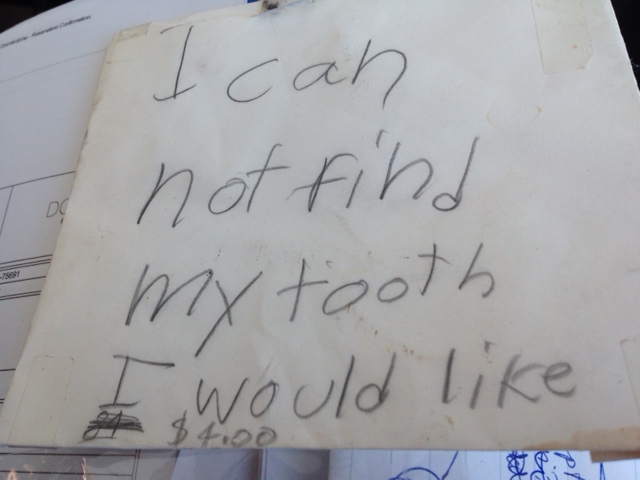 Favorite note I brought to cheer me up if needed — from my favorite 6 year old, who is now 22.