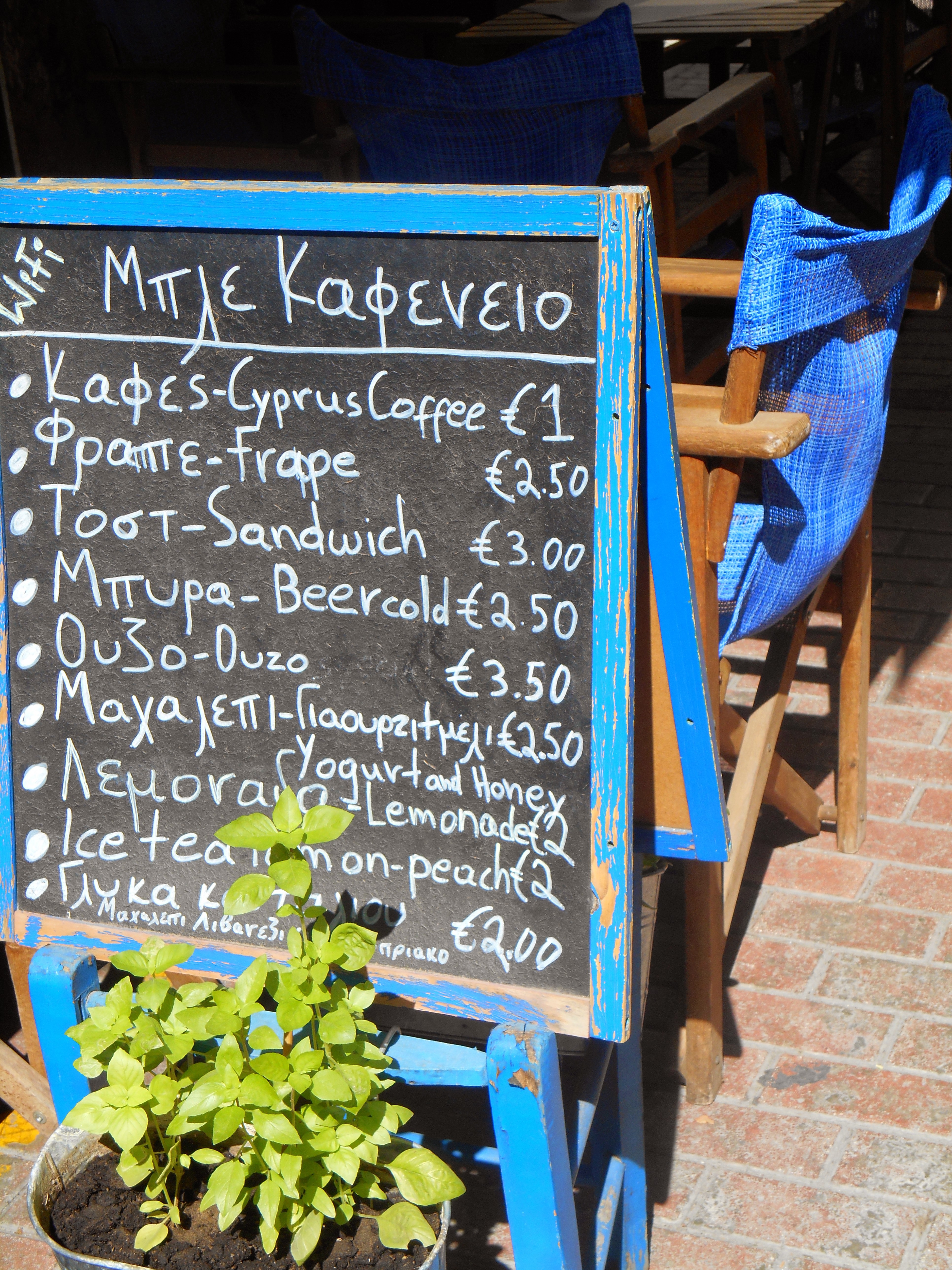 Everywhere I have visited, people drink coffee in outdoor cafes all day long and espresso drinks are standard. Cypriots love whipped, icy coffee drinks. Freshly-squeezed juices at small kiosks are common in Jordan, Cyprus and Israel.