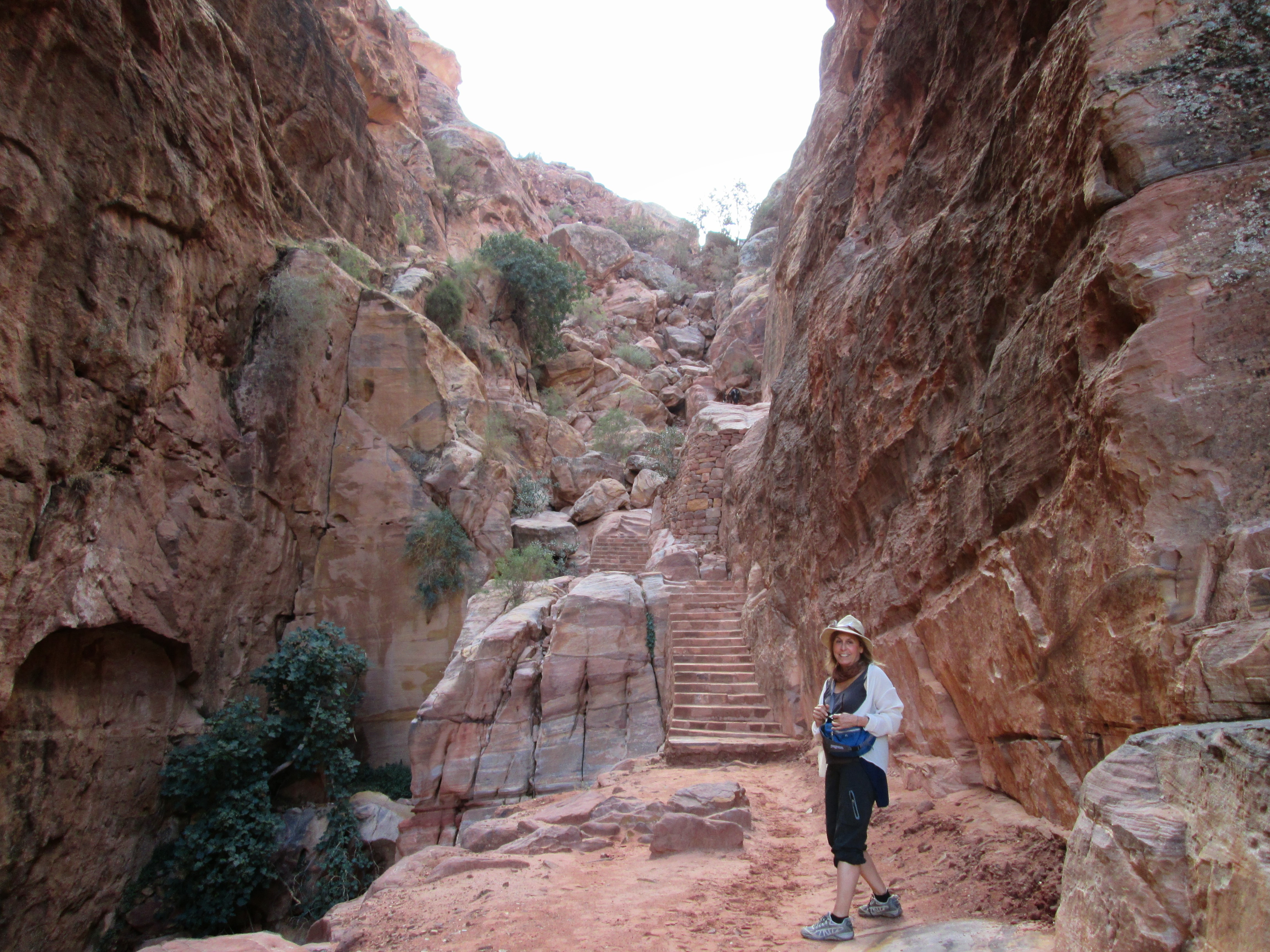 Those stairs behind me drop off on the left side to a sheer cliff. You are seeing me two seconds before I started back down the hill. This does not reflect safety in Petra as much as the intense vertigo I have developed in recent years