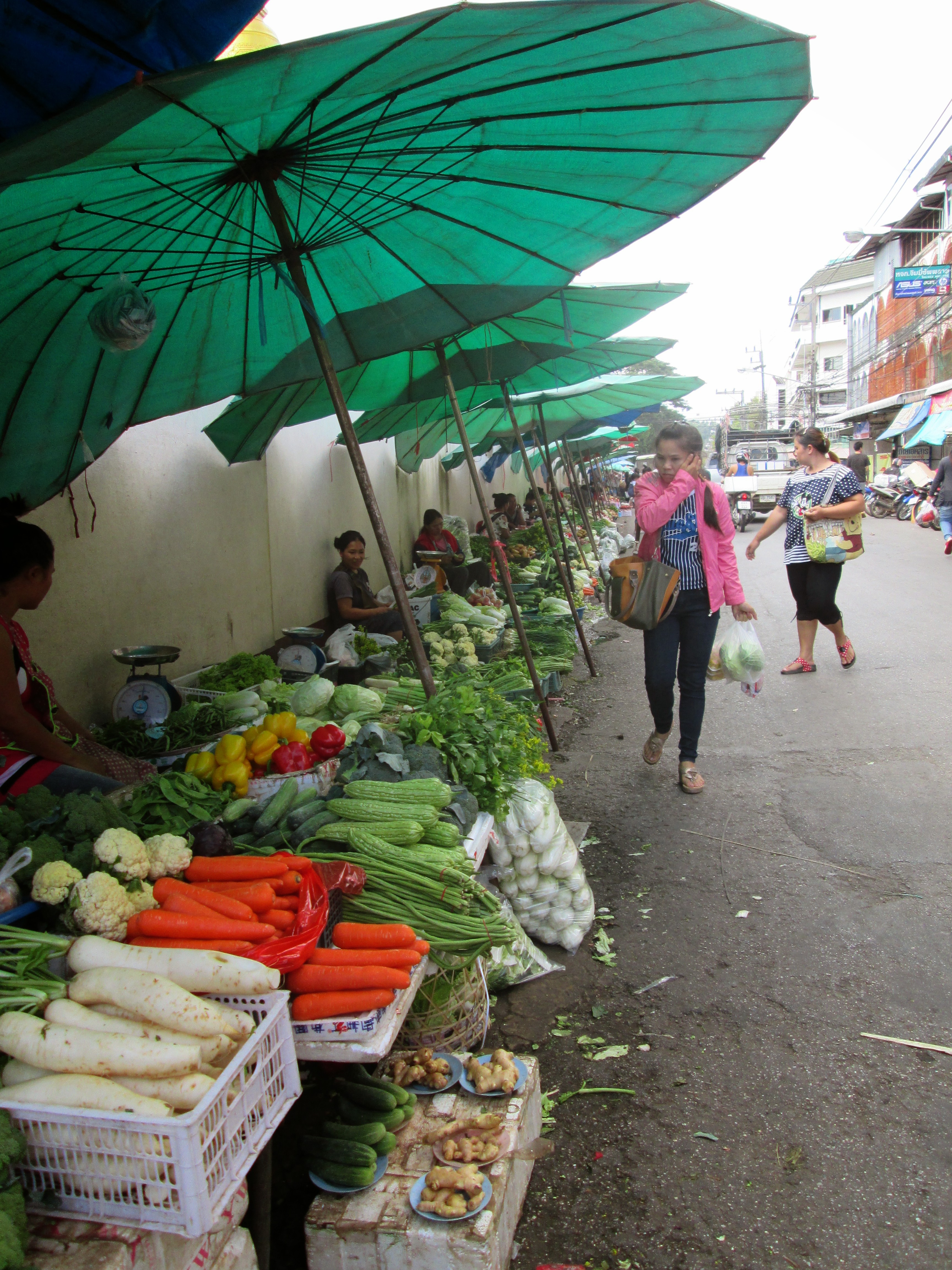 The local produce market is one of many successful projects sponsored by the Royal Family to transition the region’s opium growing to more nourishing agriculture. Hill tribes receive land and the space at the market for a promise not to cultivate opium.