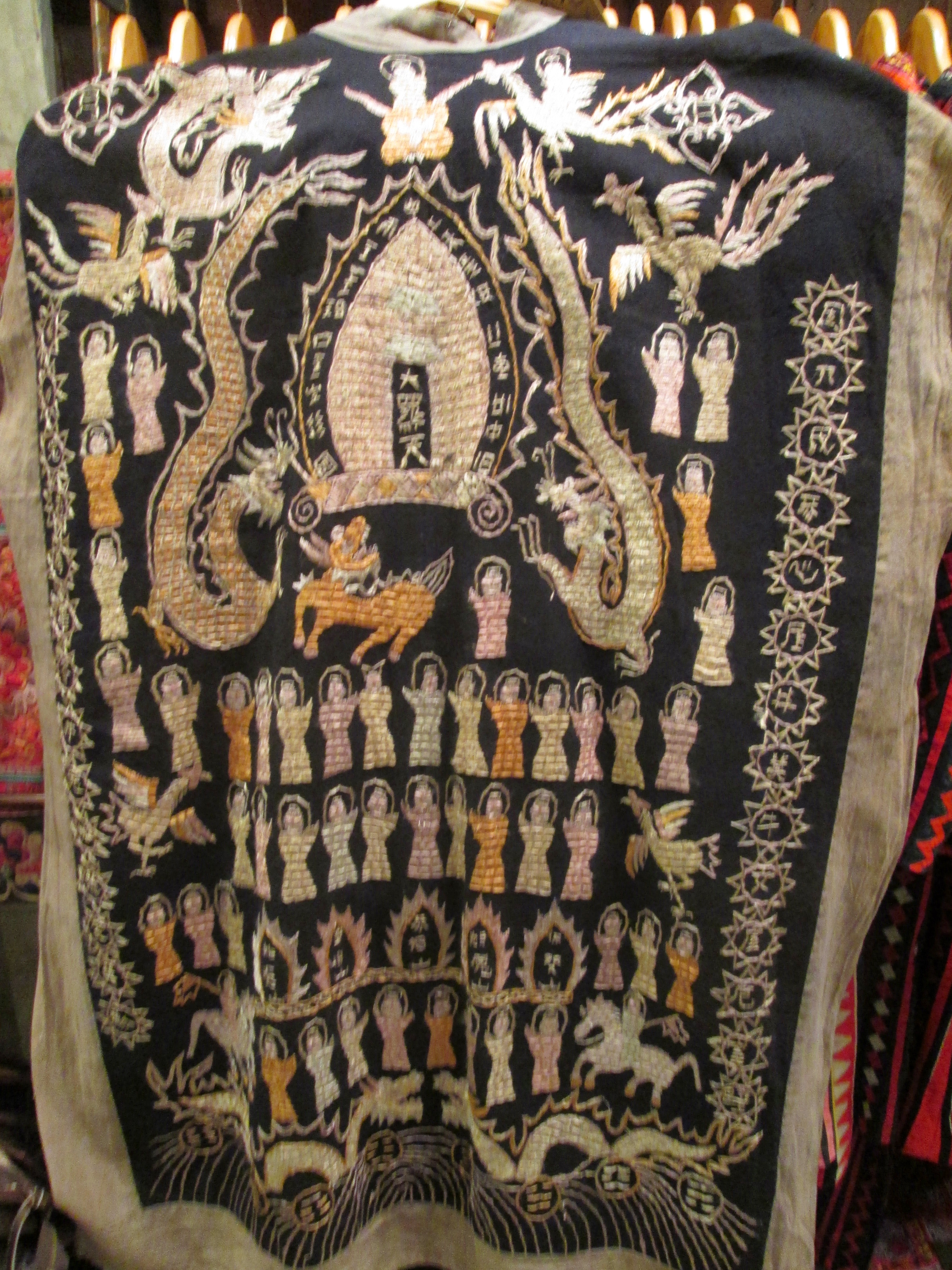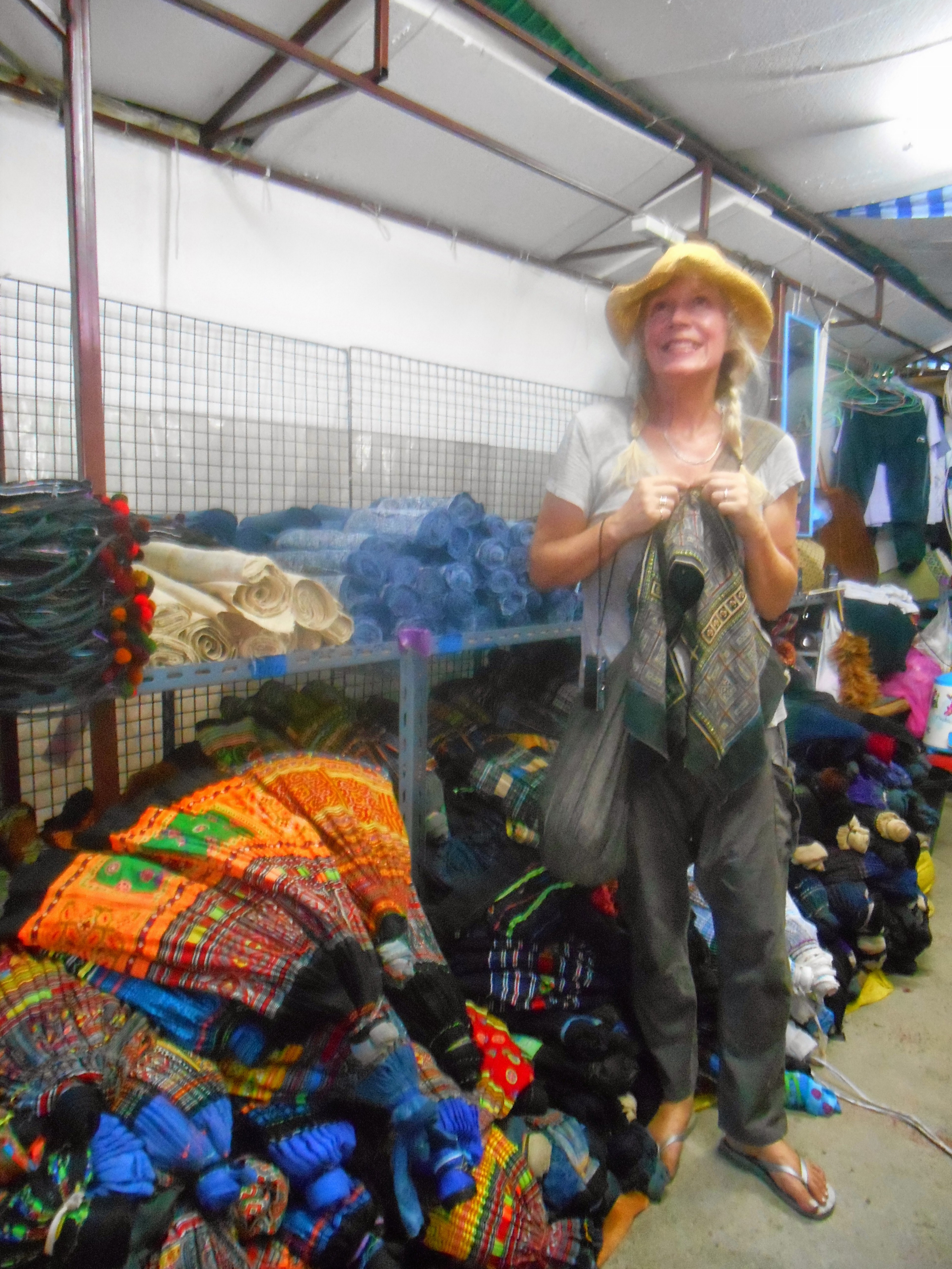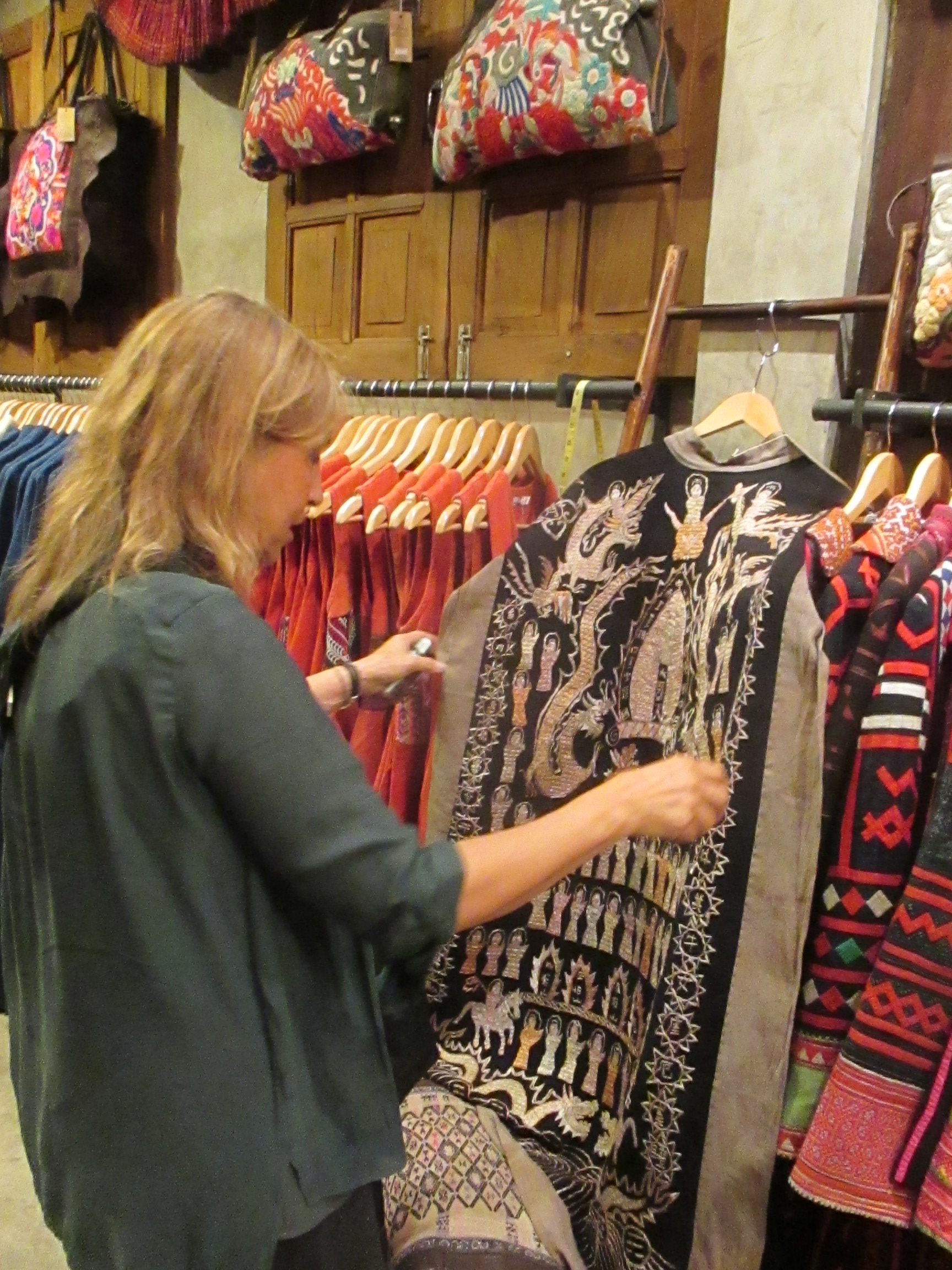 Chiang Mai has wonderful textiles and silver jewelry, which you can find in all kinds of places from tiny stalls at public markets to high end boutiques. We have looked for textiles made by hill tribes, mostly Hmong (there are many who now live in California). In general, Thailand’s ethnic arts seem to have been “discovered” in recent years by experts and retailers and exporters. We did some major mining in some funky markets hoping to dig up some vintage treasures — and we found some.
