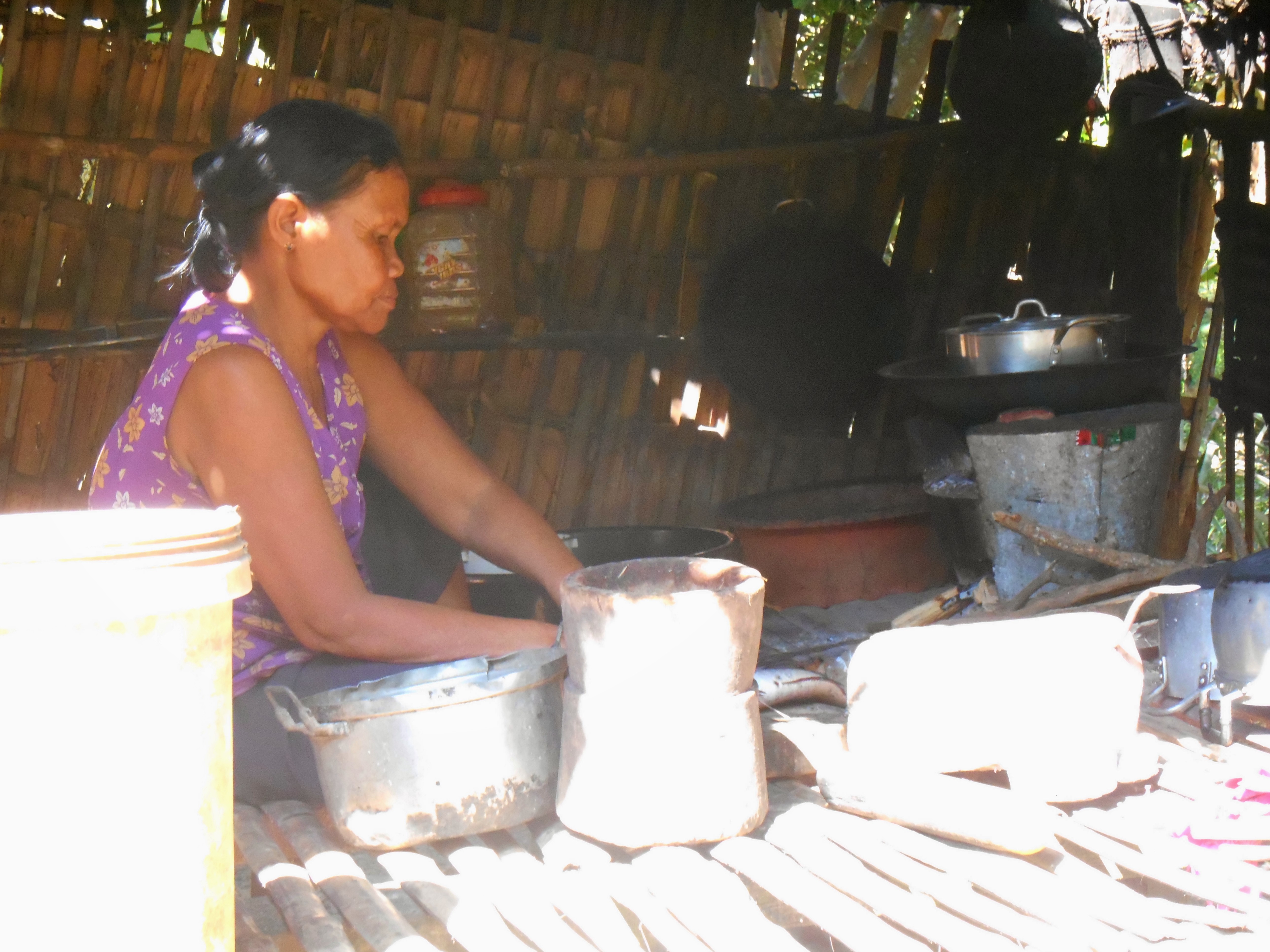 Snack break in the village. Bananas wrapped in sticky rice and grilled in their own little banana leaf packages. Delicious!