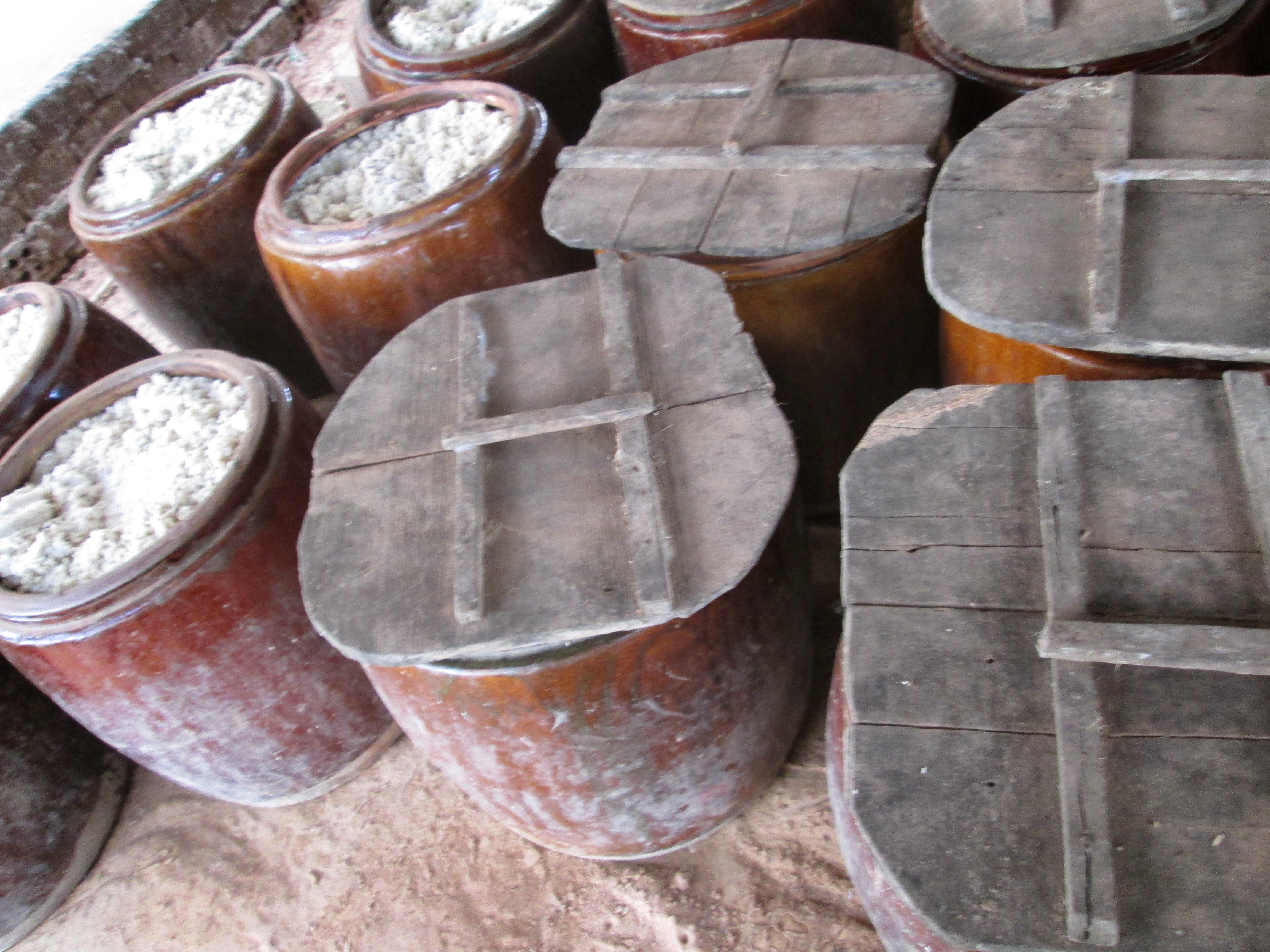 Rice fermenting for turning into rice wine at a local farm. Rice wine is so cheap, the farmers can’t recover the costs of making it. And yet they all have big houses. Why? (See pig photo for answer)