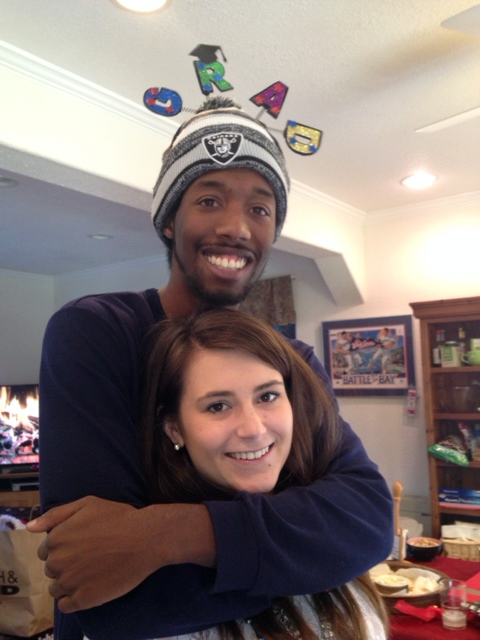 Gabe in his Raiders grad hat! And the gorgeous brunette is his Alex.