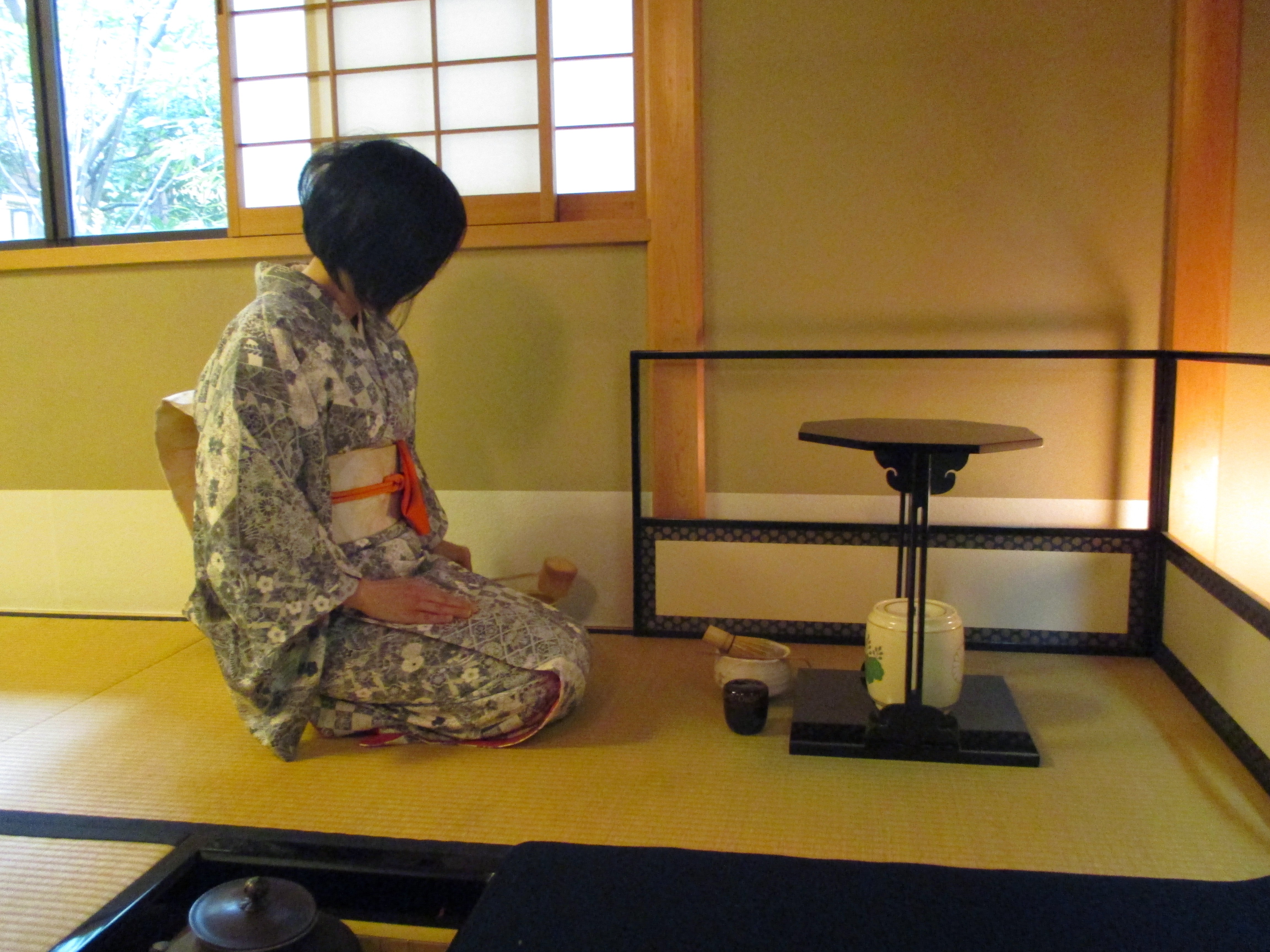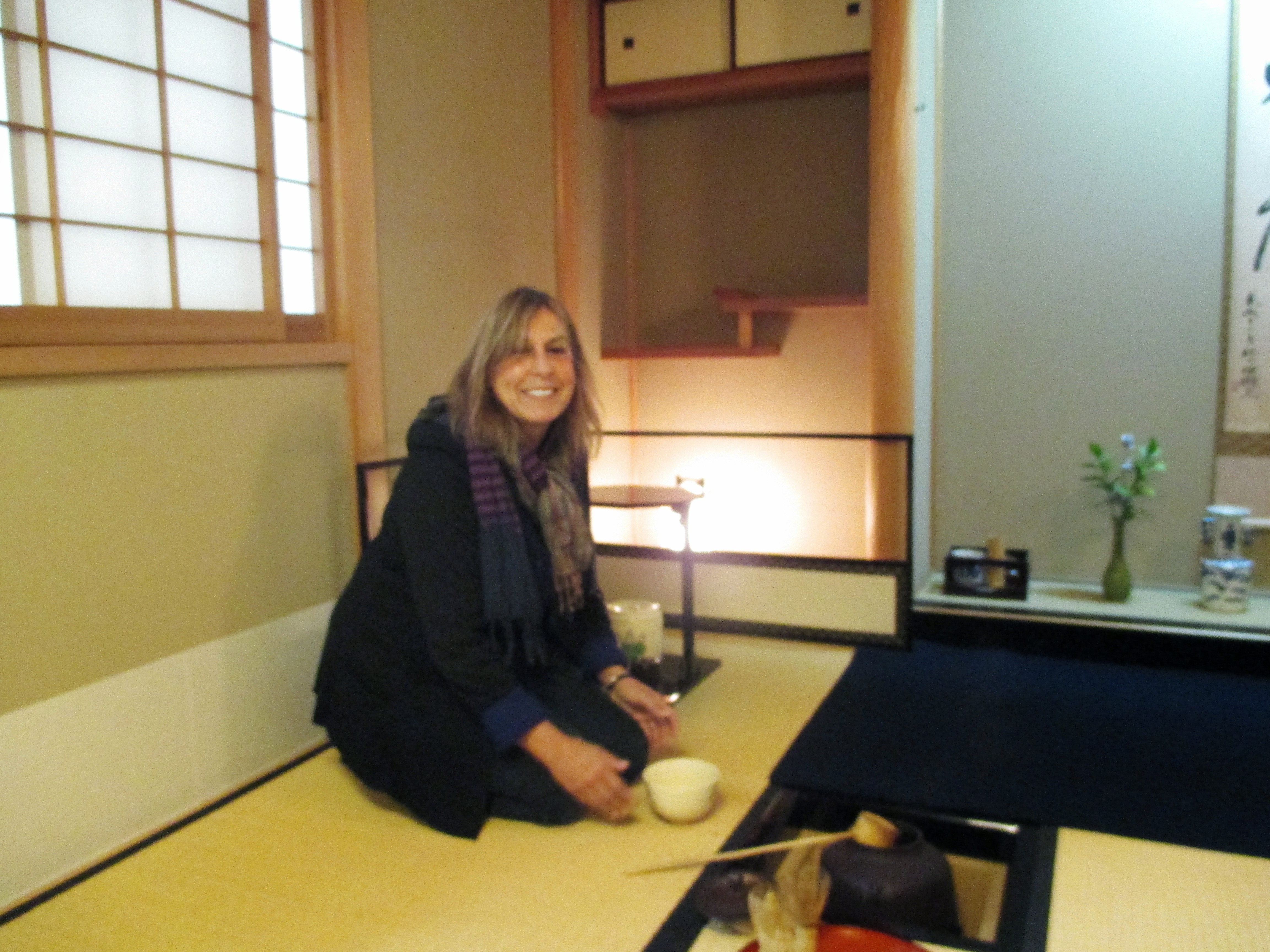 I don’t often drink green tea because the caffeine in it affects me profoundly, way more than coffee. Our tea ceremony not only featured two bowls of tea for each of us, the tea was “matcha,” which is tea that is so finely ground, you drink the leaves. I hallucinated for about six hours after that.