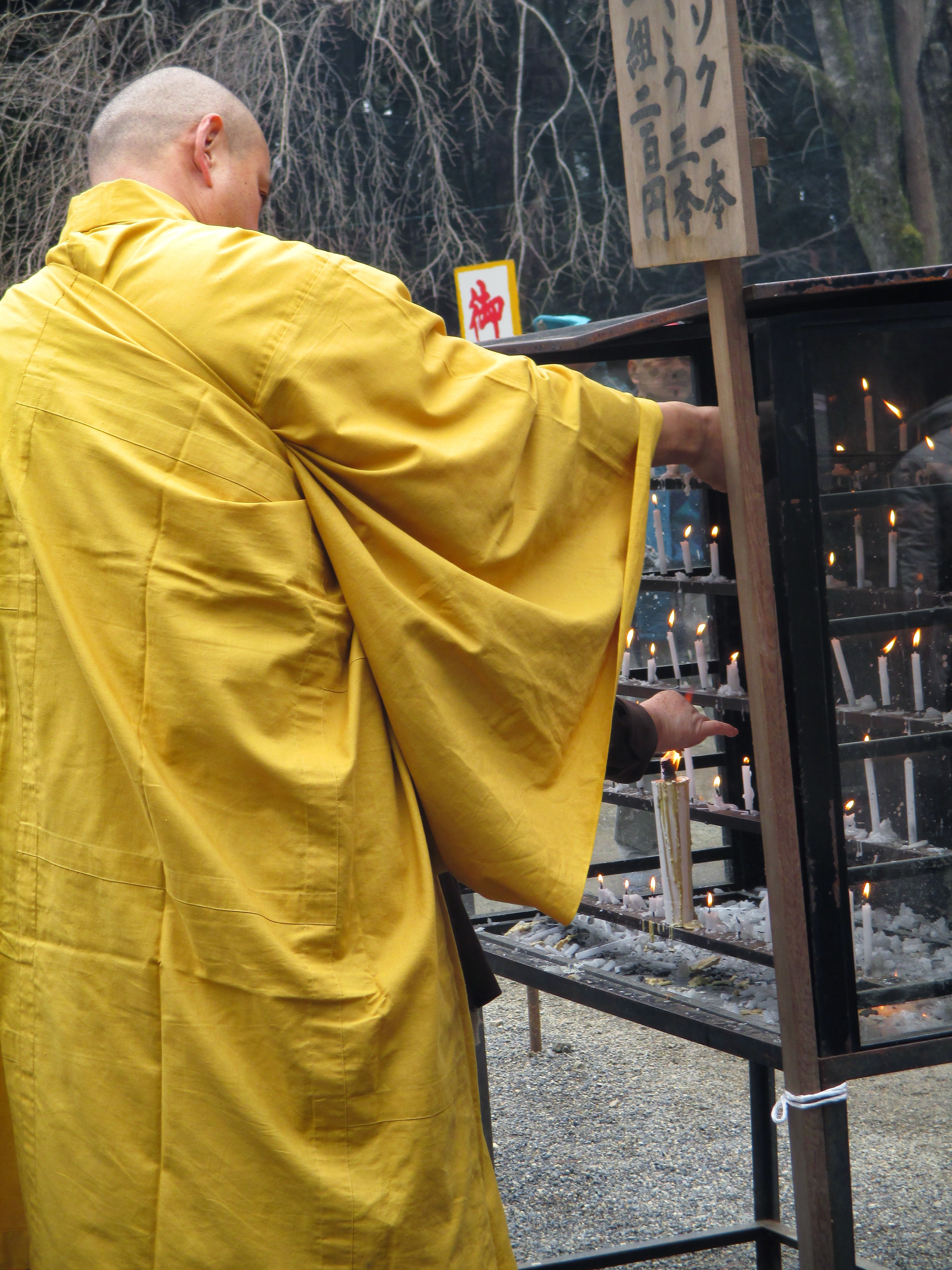 The festival engages all of the senses with chanting, taiko drumming, candles burning, incense, street foods sizzling on grills, bond fires, monks in traditional costumes, brightly colored banners, worn wood floors on naked feet, praying and, of course, the grunts from people trying to lift 300 pound rice cakes.