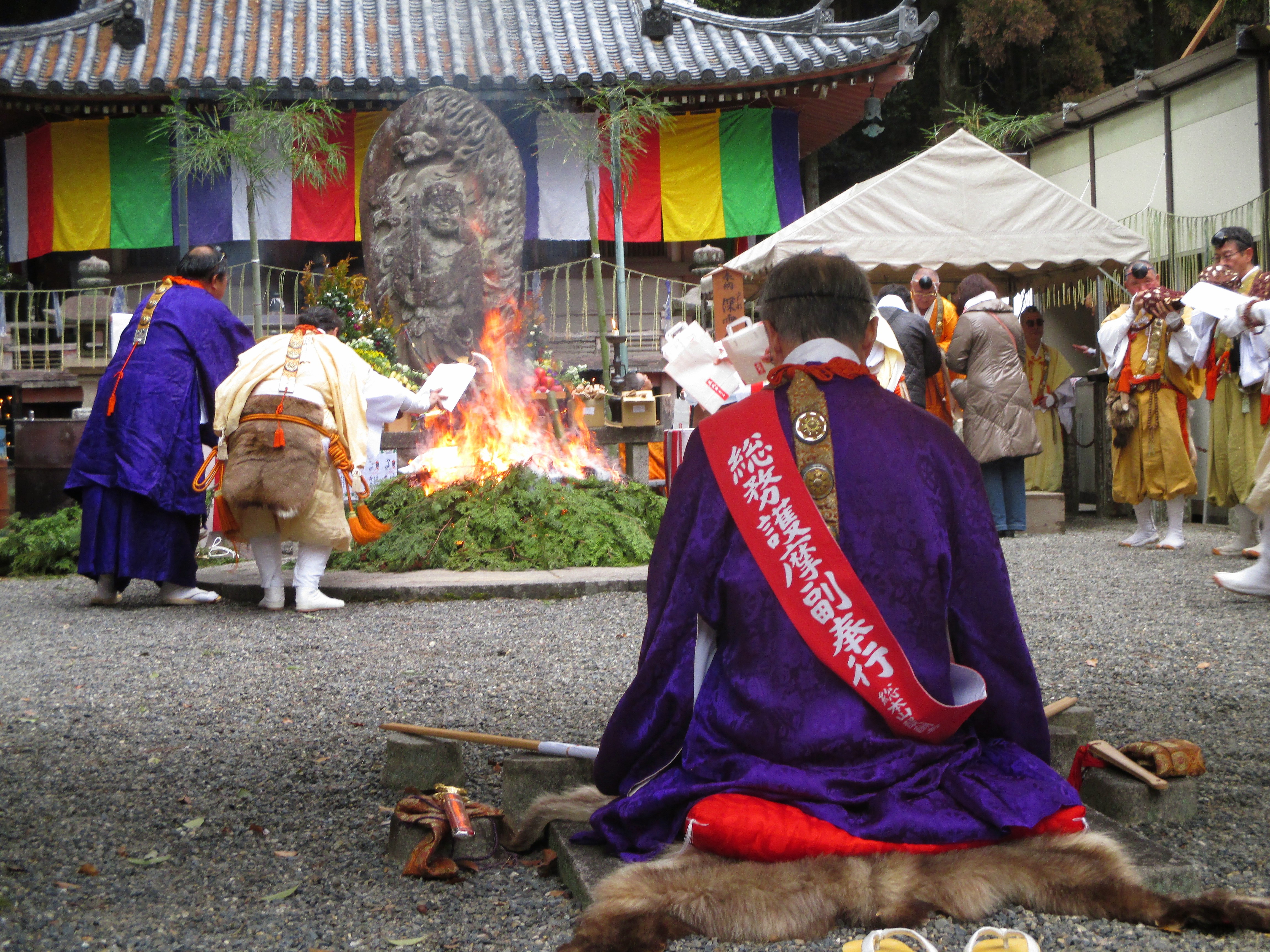 This ceremony involved fanning the flames of a bond fire with fortune papers belonging to festival guests to ward off bad luck.