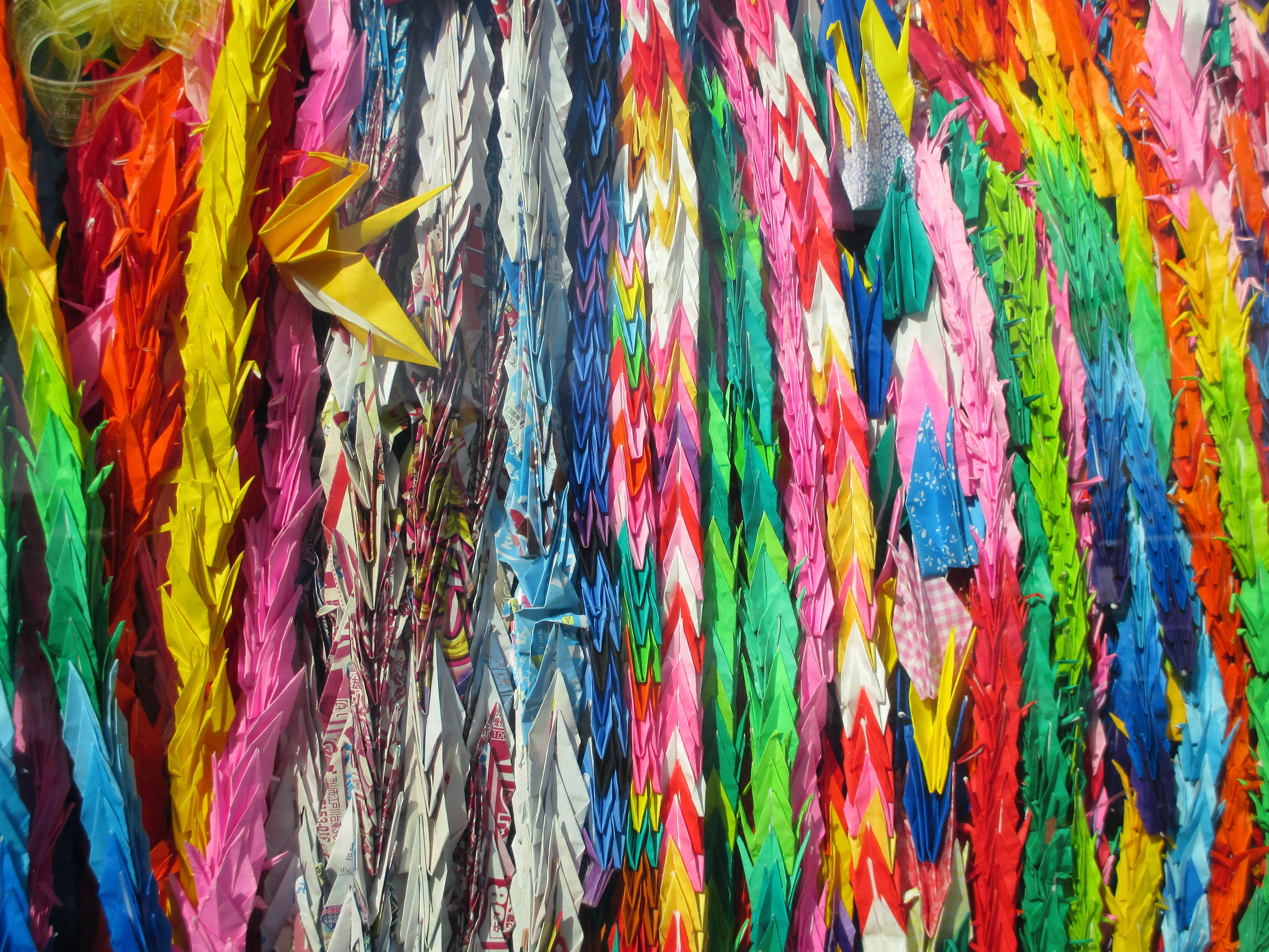 In Japan, a thousand origami cranes strung together are called senbazuru and will grant the bearer a wish. Every year thousands of senbarzuru are brought to Peace Park, a tradition inspired by a Hiroshima school girl who died of  leukemia in 1955.