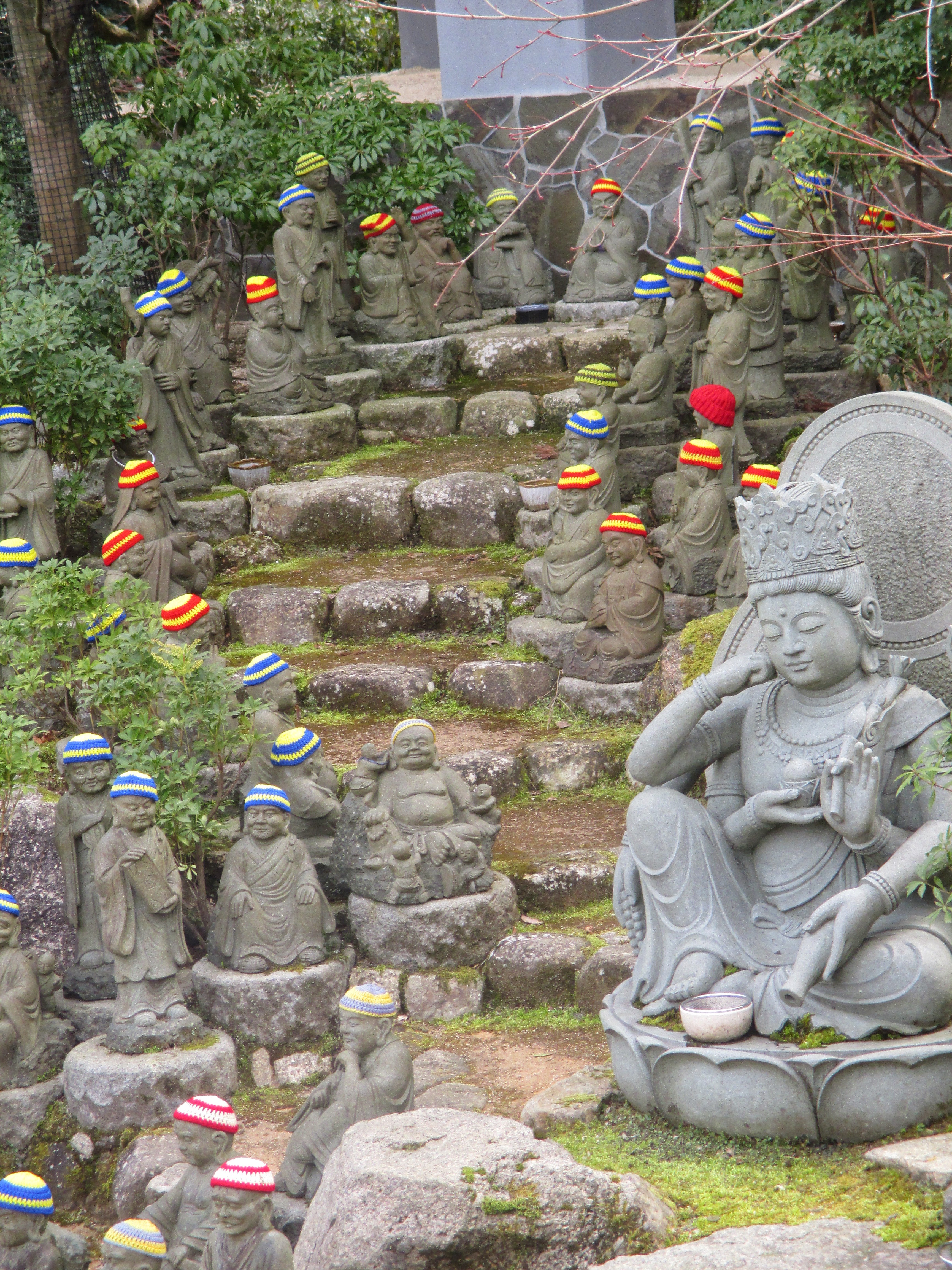 IMG_0393Daisho-in is different from any other temple I have visited (and I have been to a few temples in the past six months!).  It is, like the rest of Miyajima, both spiritual and playful.  As its stairways meander up the hillside, every corner of the site is full of surprises.  I kept thinking I was ready to head back down the path when another attraction would catch my eye or make me laugh, and I would keep going.  I think the monks at Daisho-in know a lot about human nature.