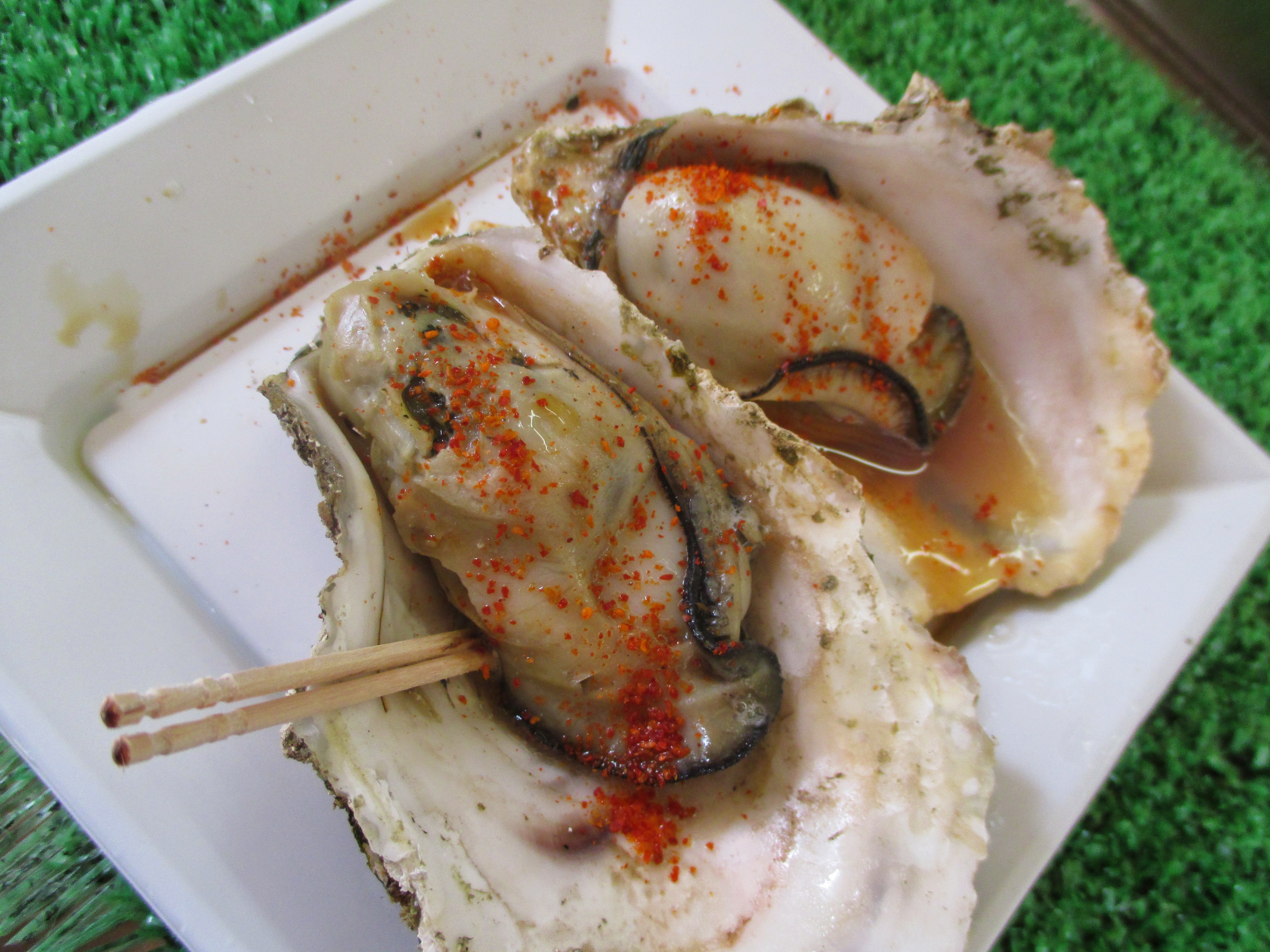 For the rest of the day, Miyajima played with me this way — one minute, I was feeling a deep reverence and the next minute, I was laughing or indulging.  From the ferry dock, I walked (with the other tourists) along the stony shoreline path where rickshaws awaited tired travelers and food stalls sold fresh barbecued oysters.