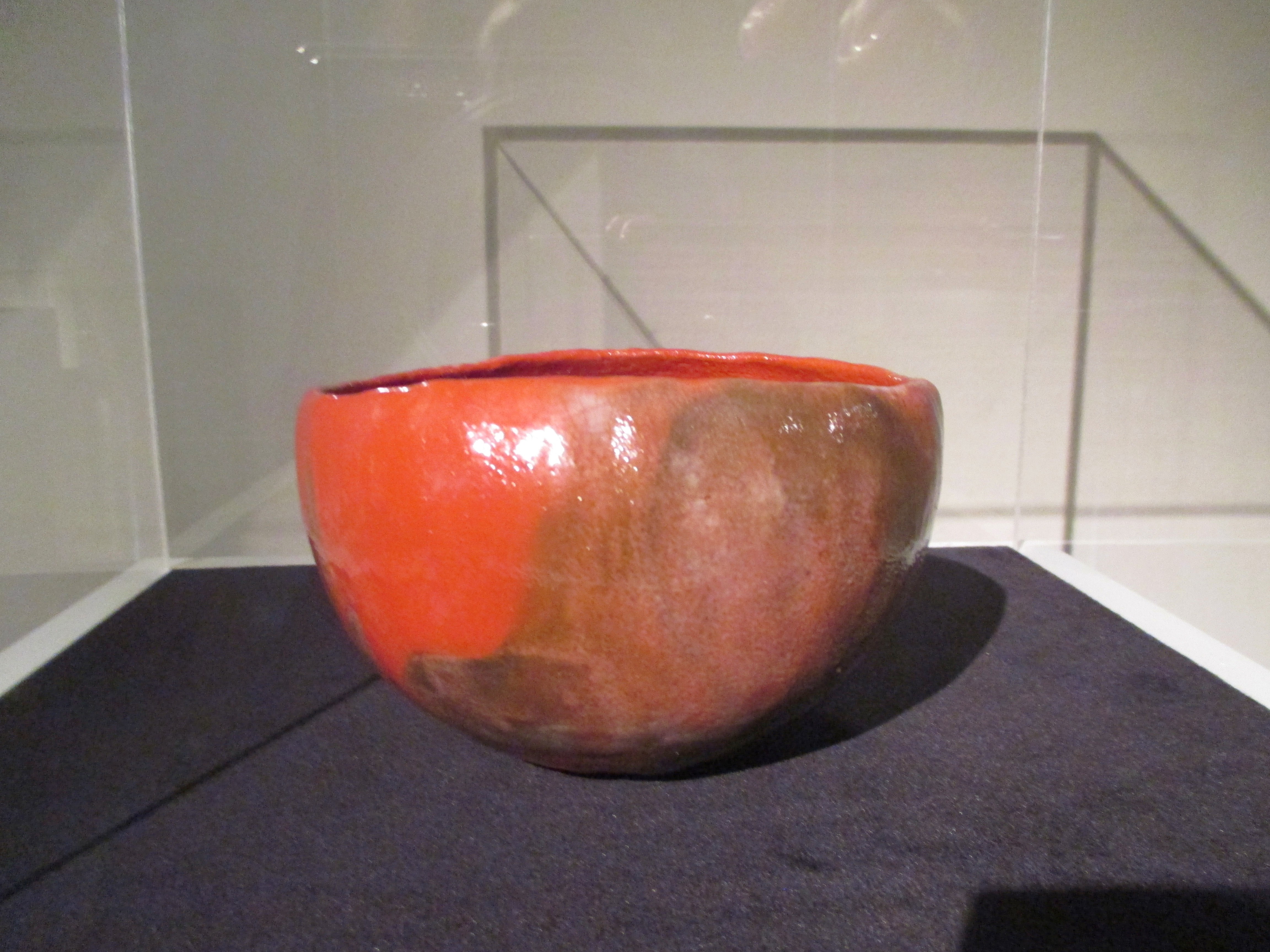 The tea bowls are made to touch with hands and lips, which is evident in their shapes and textures, and makes them all the more mysterious sitting behind plexiglass three feet away.