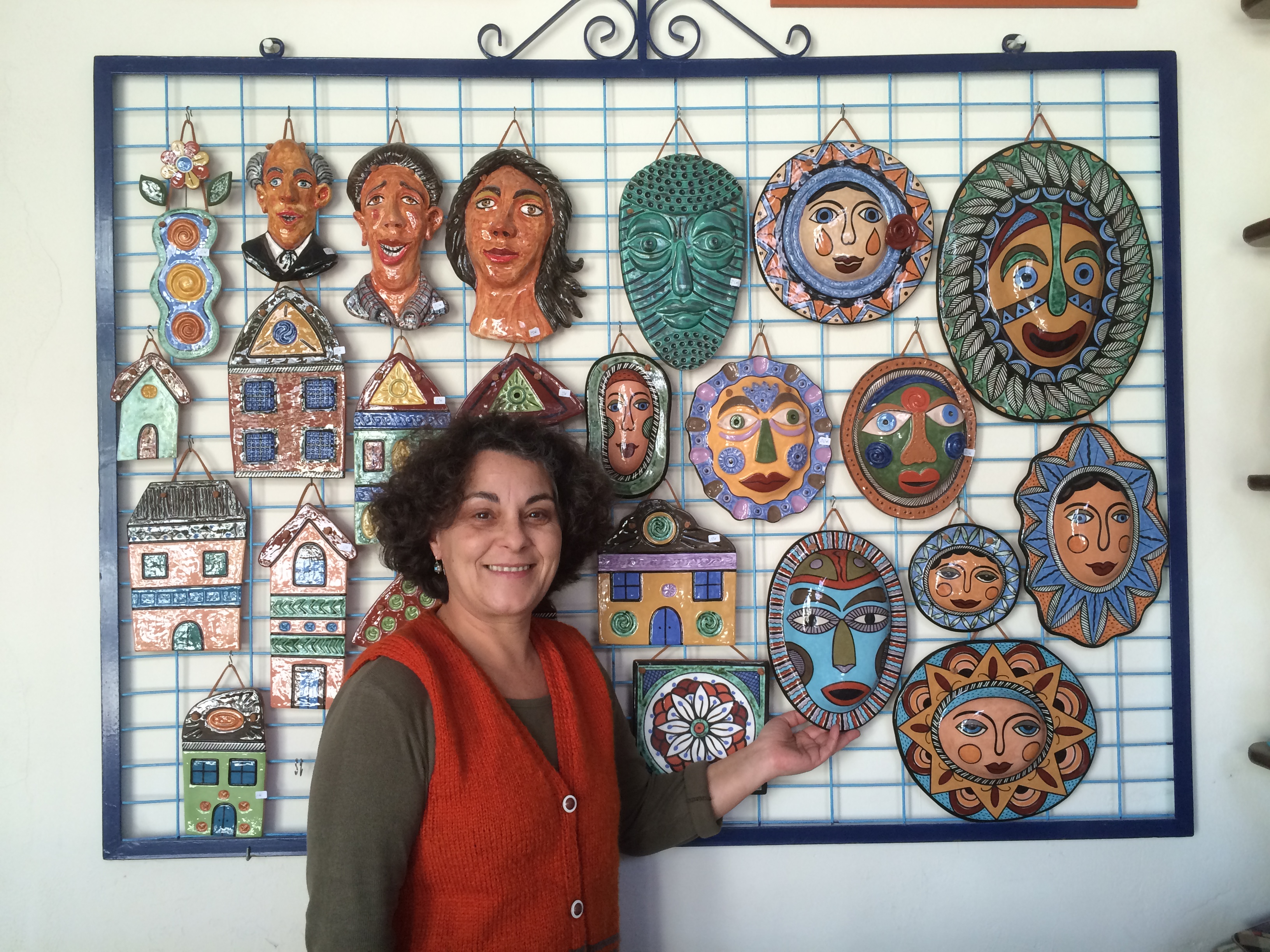 And then I went to Anna’s store. Anna’s pottery is more modern and playful. The masks are her favorite.