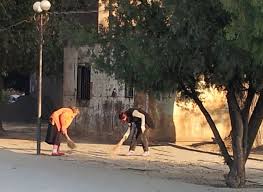 Old people are hired to sweep the streets and a lot of them have developed serious back deformities.