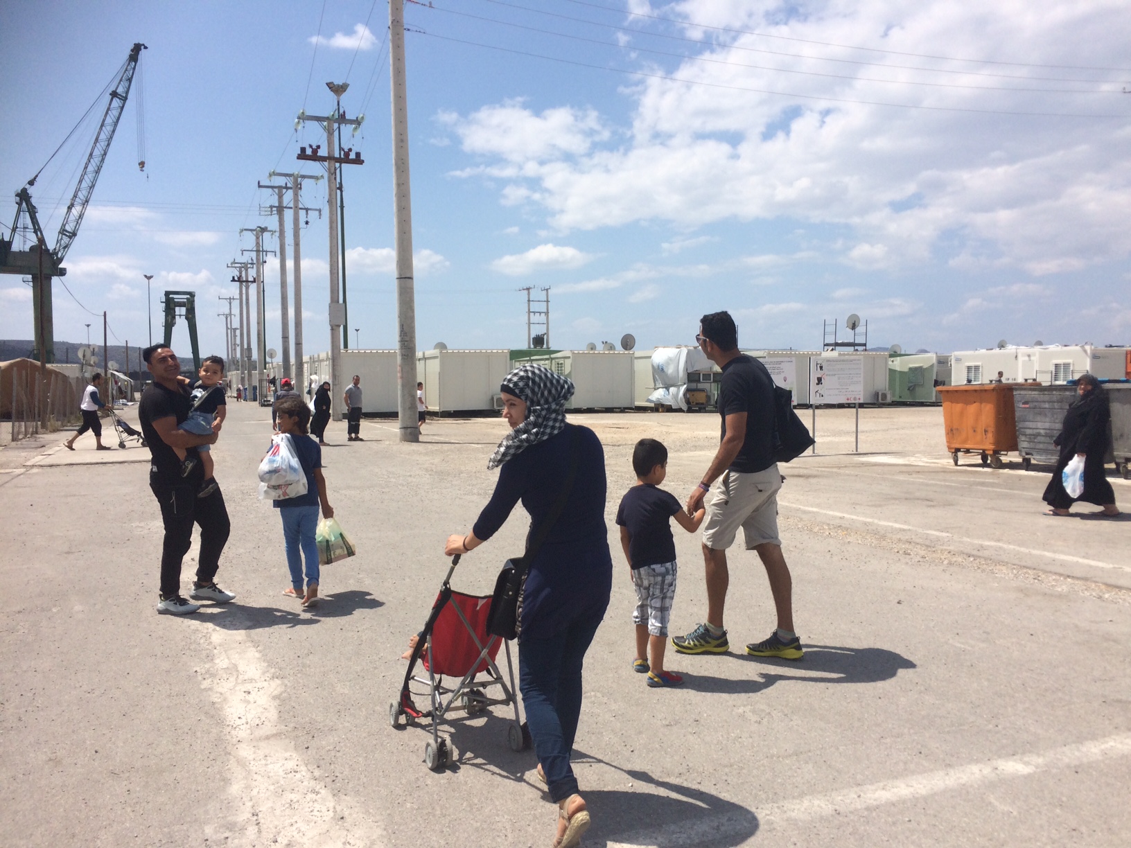 Skaramangas sits on a flat expanse of asphalt along the restless sea in what feels like the middle of nowhere. There are no trees, no gathering places, no where to hide from the searing heat of summer except inside one of the 10 x 20 foot caravans called “housing” by the Greek authorities. The caravans are air conditioned, which is some consolation for the 8 people crammed into each. But that’s about it for the consolations.