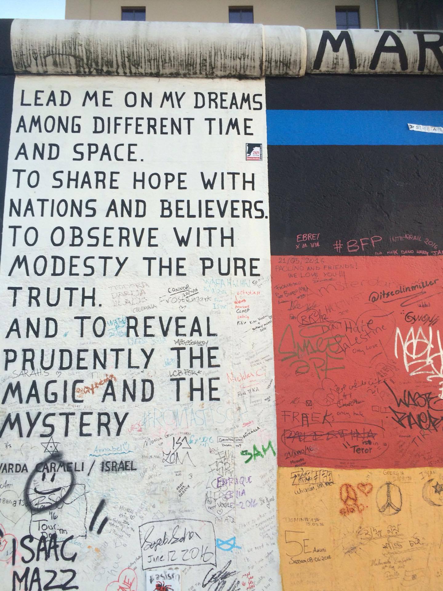 Beautifully expressed. Perhaps some of the people of Germany should visit their own wall as a reminder. I want to go there. The last time I saw the Berlin Wall was through Check Point Charlie and it had a far different feel.