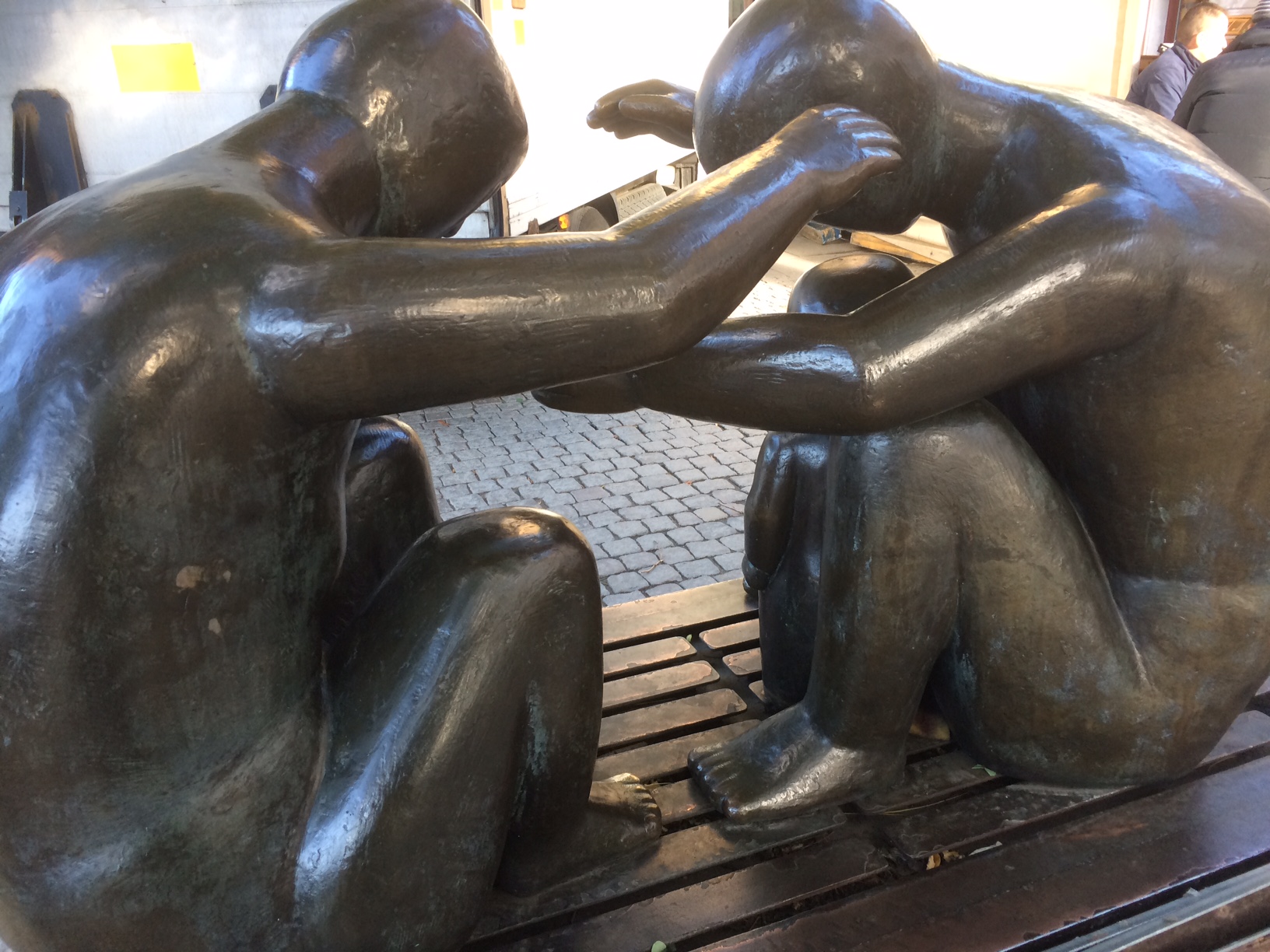 The Family, a sculpture by Pey Engstron, that sits outisde the metro station in Old Town. There is a baby in there on the right.