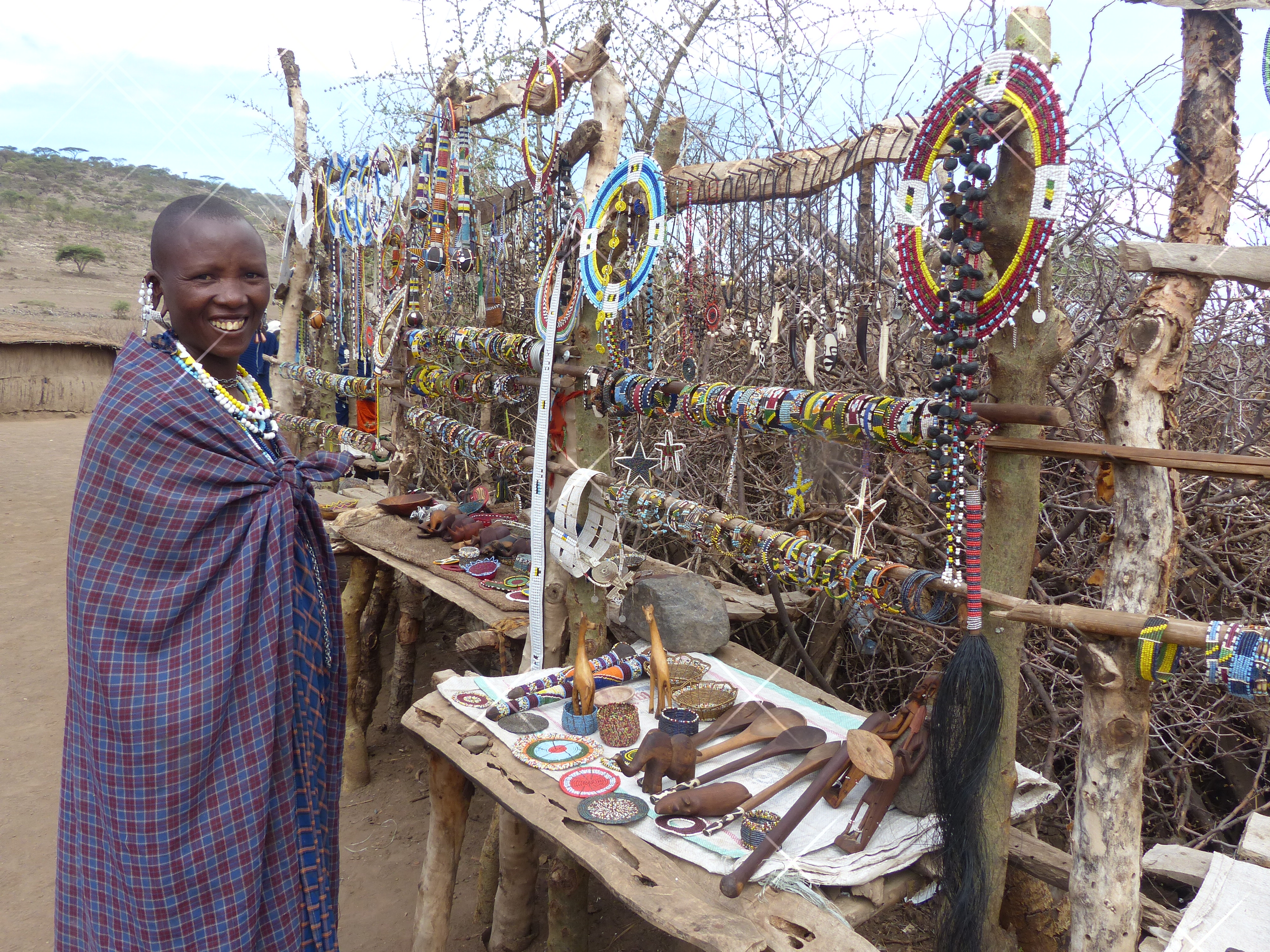 The Masai women make and sell a variety of small crafts, including jewelry.