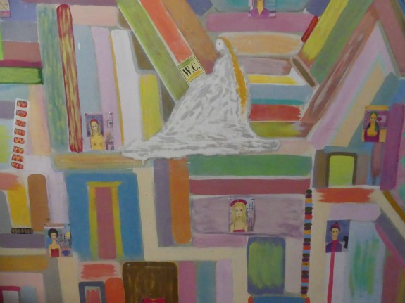 Despina and her niece painted a mural on one of the bathroom walls featuring alluring ladies.