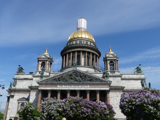 St. Isaac’s church surrounded by lilacs.