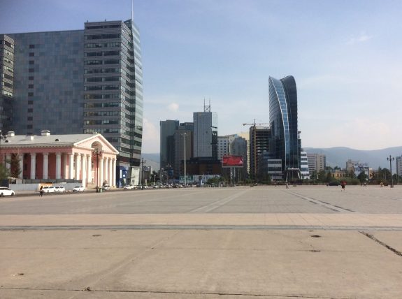 View from Ulaanbaatar’s Sukhbaatar Square. The city is a pastiche of architecture and outlook.