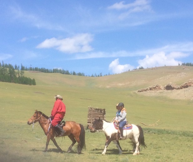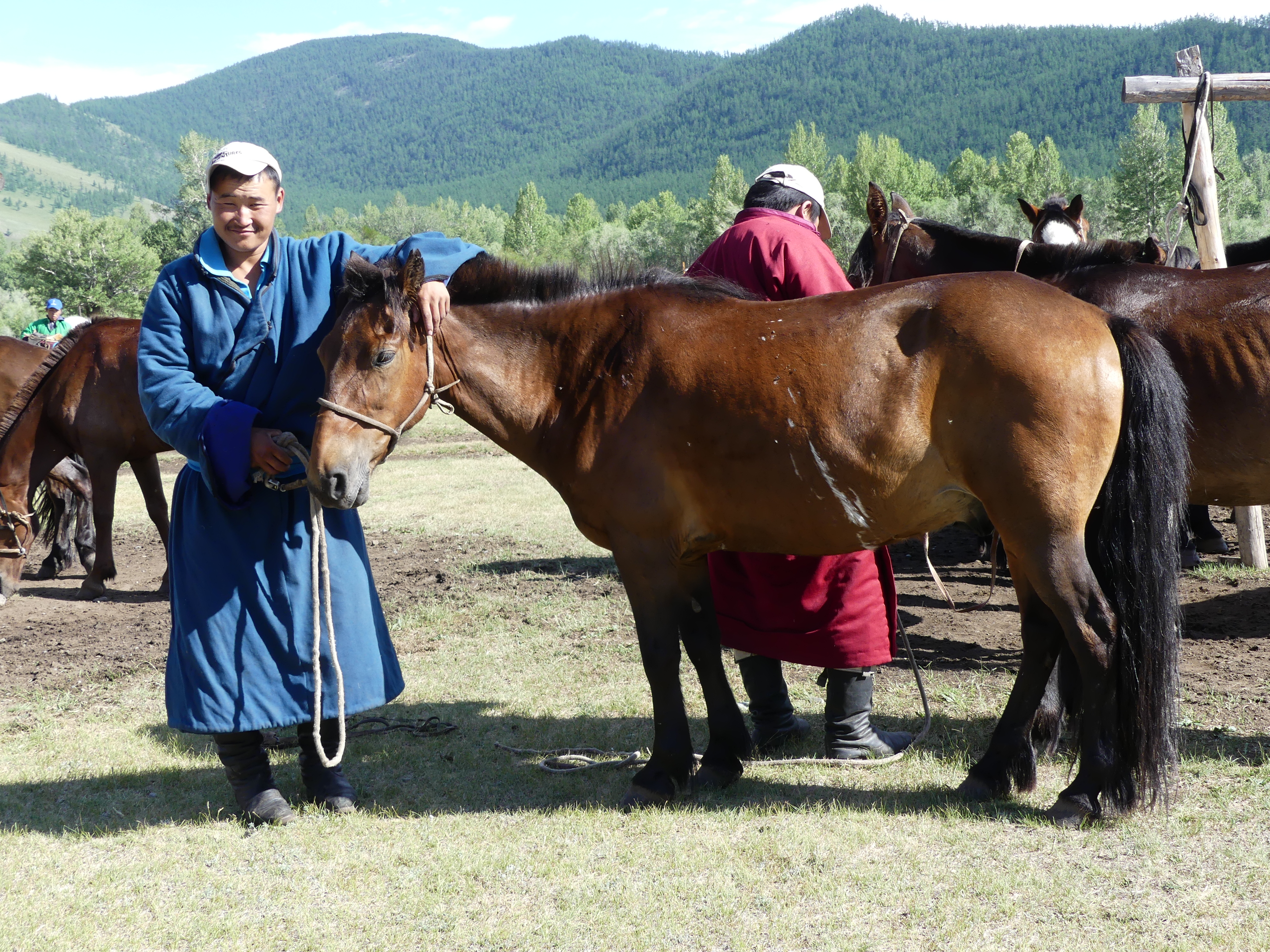 The horses are healthy and mentally well-adjusted. Moksha is 21 with the energy of a 5-year-old and the common sense of a 21-year-old. The horsemen do not groom the horses or shoe or trim their horses’  hooves. And yet the horses seem to have perfect feet and arrive at camp in the mornings with clean shiny coats. Someone asked a horseman how long it takes to train a Mongolian horse. “About a day.”