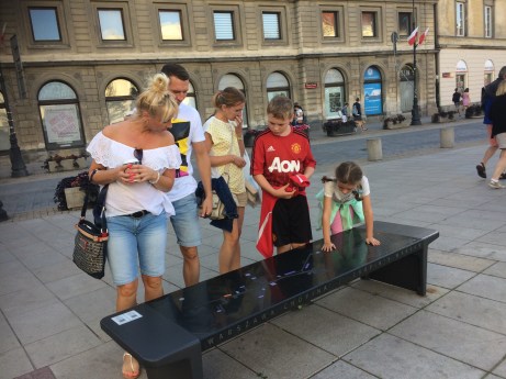 Planted in busy areas of Old Town are 15 benches that play Chopin’s music. Adorable. This family pushed the play button several times.
