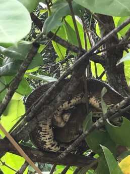 A boa constrictor hanging over the water in the mangrove as we were kayaking.