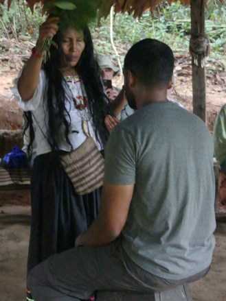 Another day, we visited a local shaman, Carolla, on a forested hill overlooking the river. Carolla began her life’s work at age 14 after the senior shaman in her village told Carolla he knew she had a special gift. Following 8 years of training, Carolla began serving the community and has been practicing for about 12 years. In Peru, very few shaman are women. Because her work as a shaman does not provide enough income to support her family, Carolla hunts and fishes.