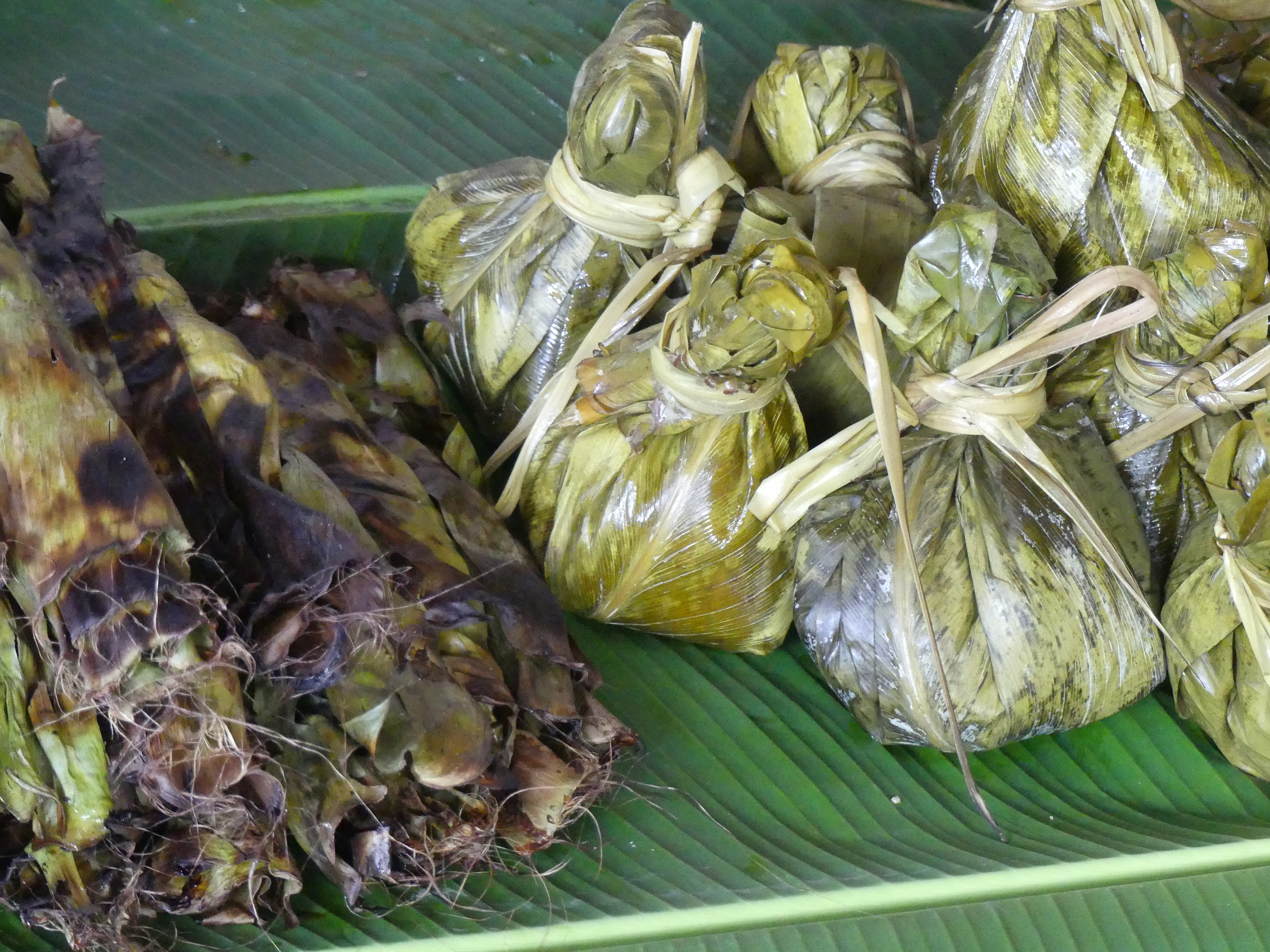 One day, we visited a local village where we learned how the residents sustain themselves with fishing, hunting and farming. Two of the women in the village prepared a lunch of local dishes, including Juane, made with rice, olives, and chicken or vegetables — all wrapped in a bijao leaf, which looks like a banana leaf. Juane is served with an amazing salsa of local peppers, onions and a jungle fruit called “cocona.” We also had “patarashka,” a local fish marinated in herbs, chilies, onions and tomatoes and then wrapped in a bijao leaf and slowly grilled over a wood fire. Oh wow, it was all just so delicious.