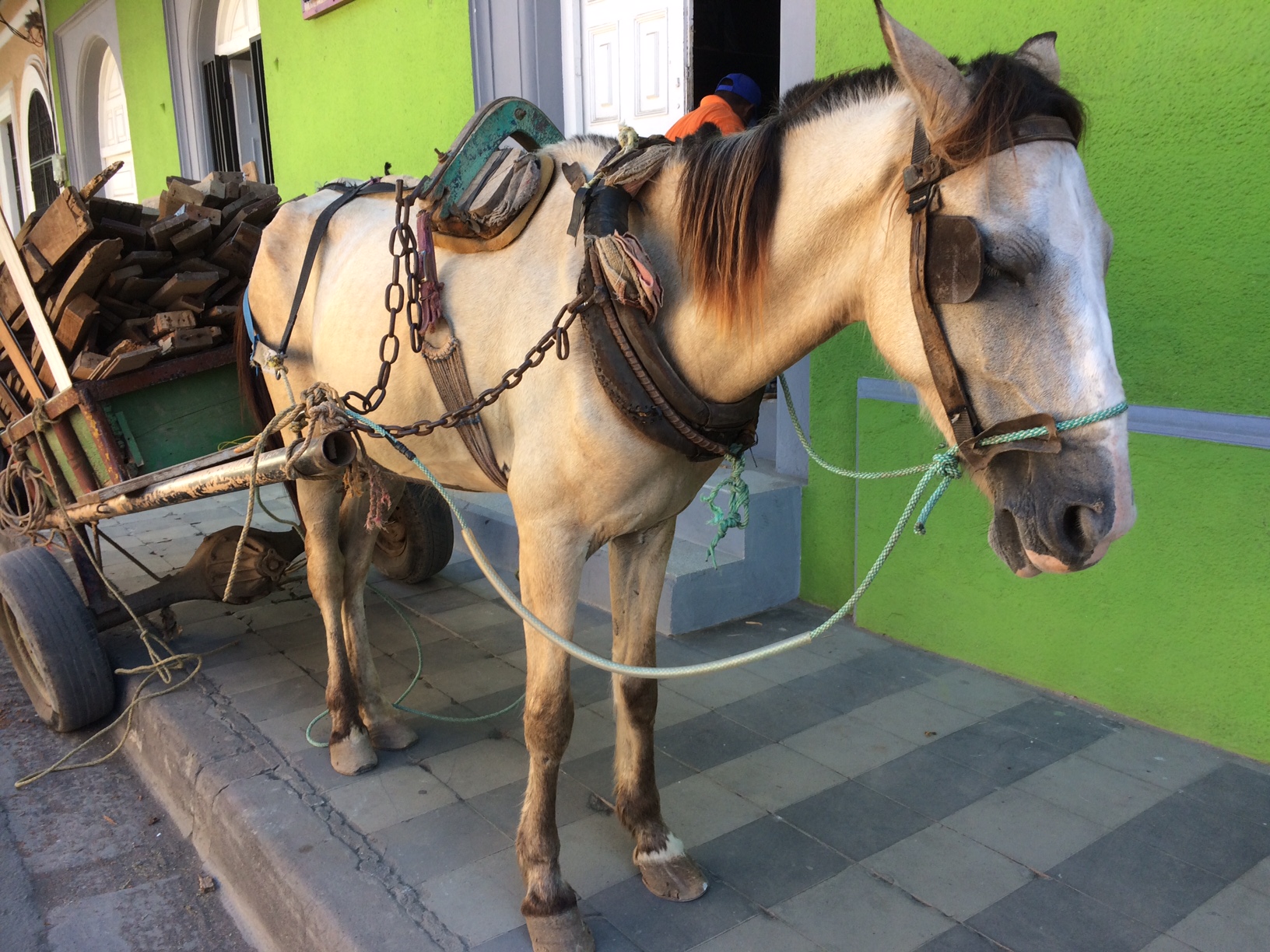 I also saw a part of Granada’s gentle countryside riding a chestnut mare named Lucy. My tour guide, Wilberto (riding a caliente pasofino!) told me about the medicinal plants growing along the roadside and encouraged my pathetic efforts at Spanish. The terrain was flat and mostly wooded with a view of the inactive volcano called Mombacho. This is one of the areas where ex-pats (who in the US are called “immigrants” if they aren’t from Norway) build retirement houses. We also saw a lot of small farms and squats near the roadside, some stucco and some barely standing. “Nicas” in the Granada countryside are mostly poor and obviously work very hard to sustain their families.