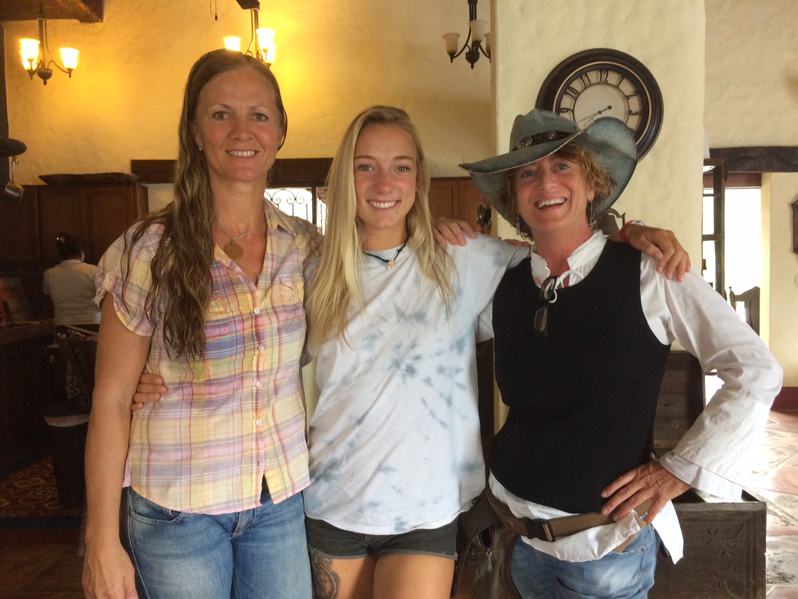 Blue (on the right) with fellow cowgirls — Heike from Germany and Naomi from Canada.