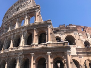 In the afternoon, we visited the  Colosseum,  with a history that reminds us of the Hunger Games.  Emperor Vespasian– not Armenian — built it to stage entertainment that featured fights to the death — between animals, between animals and humans, and between humans. The games, which were free, were designed to keep the population distracted while Rome effectively burned. Sounds familiar.