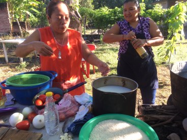 When we arrived at Veronica’s house, she was ready for us. Water was boiling over two fires in the yard and we got right to work chopping the vegetables and chicken. No shortcuts. The sauce was made from fresh chiles and tomatoes. The rice was cleaned and washed, then toasted in oil before adding the water and vegetables. The 1250 tortillas had to be warm from the tortilla maker. This food for the masses was made with the same love and care that went into food for the family.