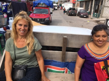 Two young men who remembered me from Tapachula made a point to come over and say hello. One joined us on a second trip to the market to help haul crates of milk and produce in trade for a roasted chicken.