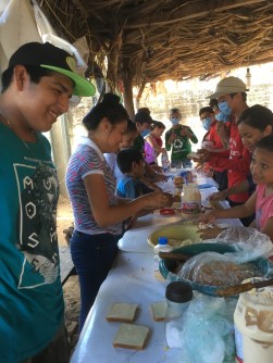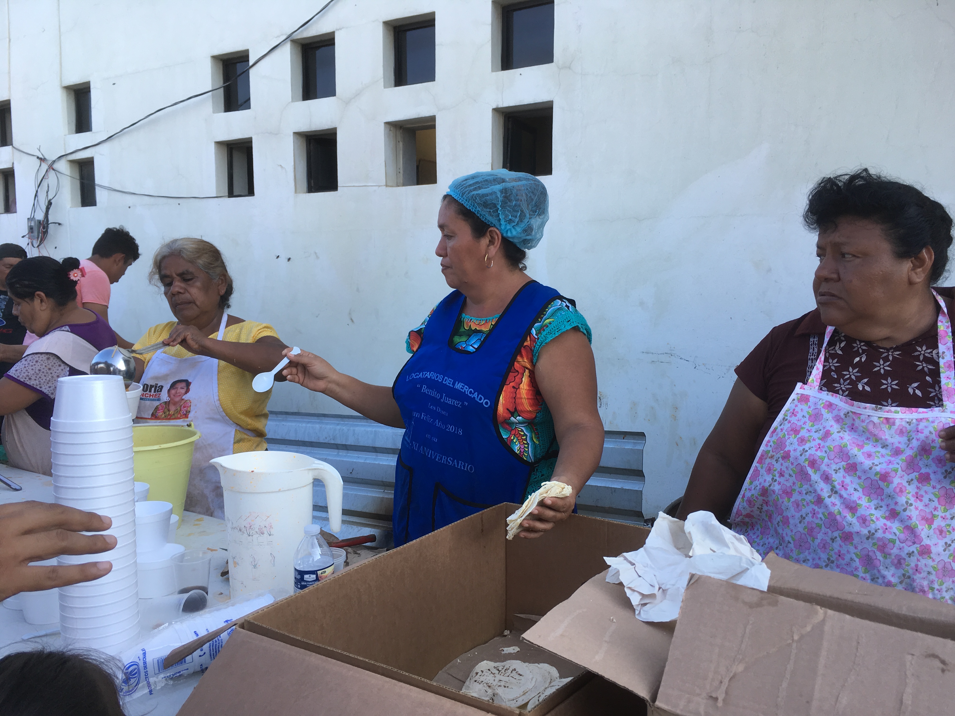 The night before, we helped our Radio Totopo friends prepare and distribute more than 1000 sandwiches and 1000 helpings of chicken stew and rice. We distributed hundreds of cartons of milk and hundreds of pounds of fruit. After the sun went down, the Mayor sponsored a showing of a soccer game on a big outdoor screen before thousands of grateful, weary people.