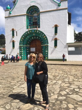 We also spent an afternoon in the small town of Chamula where Catholic church traditions have been adapted by the indigenous Tzotzil community. We timed our visit to experience Sunday observances at Iglesia San Juan and what we found is difficult to describe. Inside the church, thousands of white and orange flowers and as many candles seemed to be floating in the fog of incense. Statues of saints lined the walls, men on one side and women on the other, except for St. Francis who was with the women because he didn’t perform enough miracles. The sanctuary did not have pews or chairs. Instead, the floor was covered with families of worshipers sitting on a carpet of fragrant pine needles. The congregation is permitted to sacrifice animals — although we didn’t see this ritual during our visit. There were no sermons but we heard some wonderful music that seemed related to jazz. Photographs are not permitted inside the church but we have a few reminders from outside.