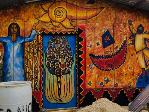 Oventik is an outdoor museum of inspiring murals covering most of the dozens of small wooden and cement block buildings. Most carry specific or symbolic messages about social justice and revolution, all of them focused on people. Dozens of high school students were painting some walls and repainting others. They acknowledged us with nods and shy smiles but I got the feeling they wouldn’t answer any of the questions I still had.