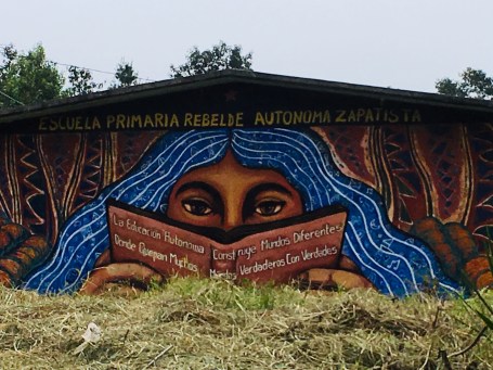 By the end of our tour, we didn’t learn much about the Zapatistas that we had not read beforehand. https://www.theguardian.com/global-development/2018/feb/17/mexico-zapatistas-rebels-24-years-mountain-strongholds  But the murals gave us a more immediate sense of the Zapatistas’ philosophy, and the courage they needed to fight 500 years of repression and exclusion. I left with a feeling of encouragement that people without power can create the conditions for peace and justice.