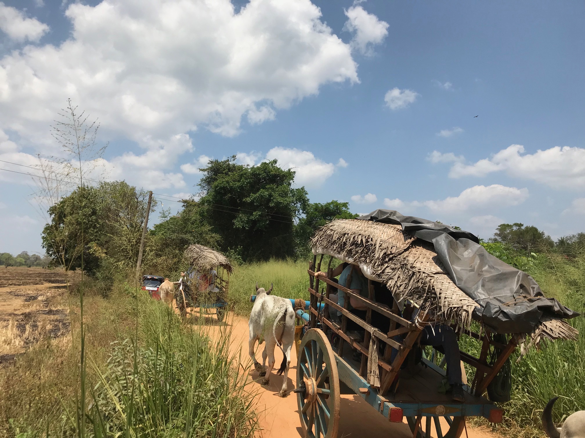 We paddled through lotus pads past rice paddies to….lunch and bullock cart rides.