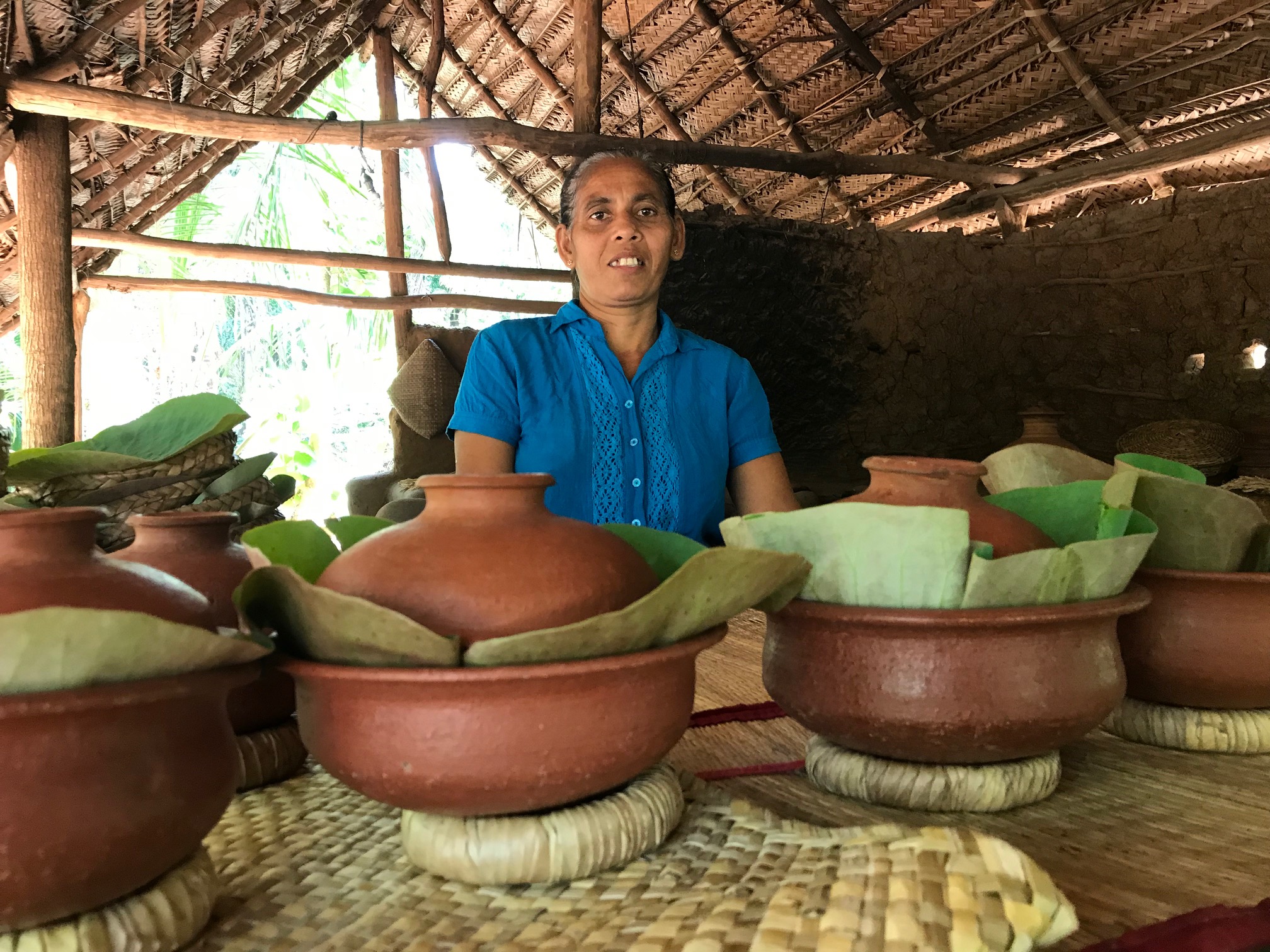 An amazing lunch of curries served on a palm leaf during our village tour. Sri Lankans’ traditional way of eating these dishes is to scoop small amounts of food onto two fingers and a thumb.