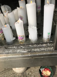 The second day is like the first, except our meals include watermelon and grapes, and I take the time to honor a friend of the family who has left us. I say her name to myself during the morning chanting. I light a large candle and paint a black roof tile with a goodbye message. I realize how glad I am to be at the temple right now, where there are so many small ways to honor her memory.
