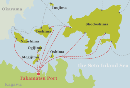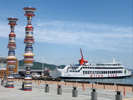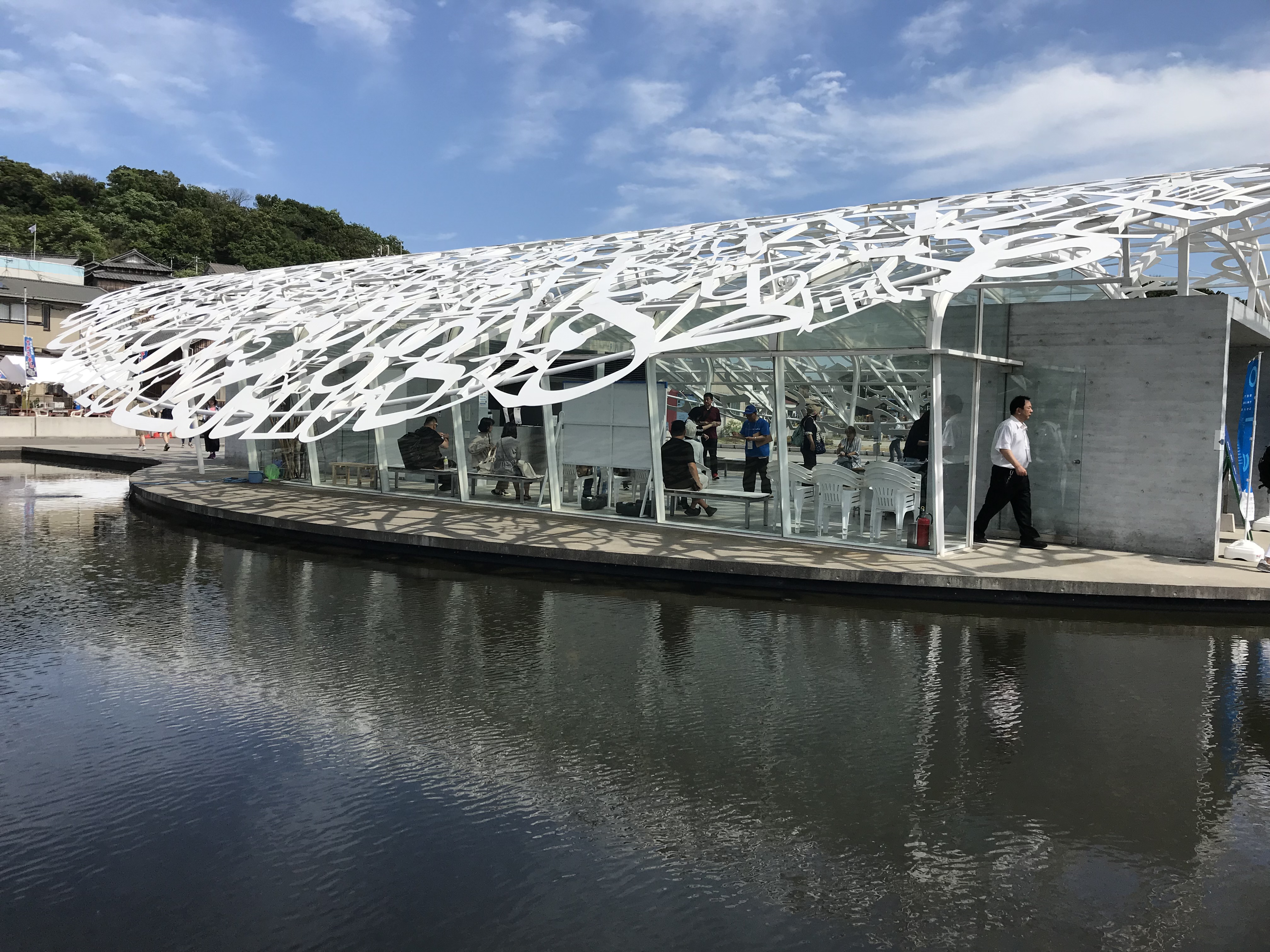 We planned our path through Japan around this festival and it’s been a wonderful way to see art and also the islands. We are staying in the large commercial city of Takamatsu on the big island of Shikoku, where a system of ferries shuttles passengers and vehicles to and from the smaller islands.  Bonus points for the region’s famous udon noodle dishes!
