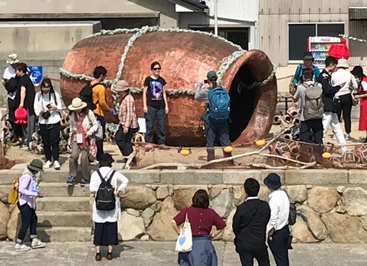 My favorite work was also in Ogijima’s port. “Takotsuboru” is a giant clay pot like those Japanese fishers have traditionally used to catch octopus. Installed to attract children, it attracts a steady stream of adults. This symbol of island culture is understated yet dramatic, lovable and touchable.