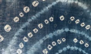 Some of the most interesting textiles at Orinasu-Kan were made using a technique called “kasuri”, also known as “ikat.” Kasuri creates patterns on a woven fabric according to the ways the threads are “tie-dyed” before they are woven.  Check out this short article about kasuri (ikat) that provides a better explanation.   https://www.clothroads.com/kasuri-and-indigo-threads-that-blur-and-bind/