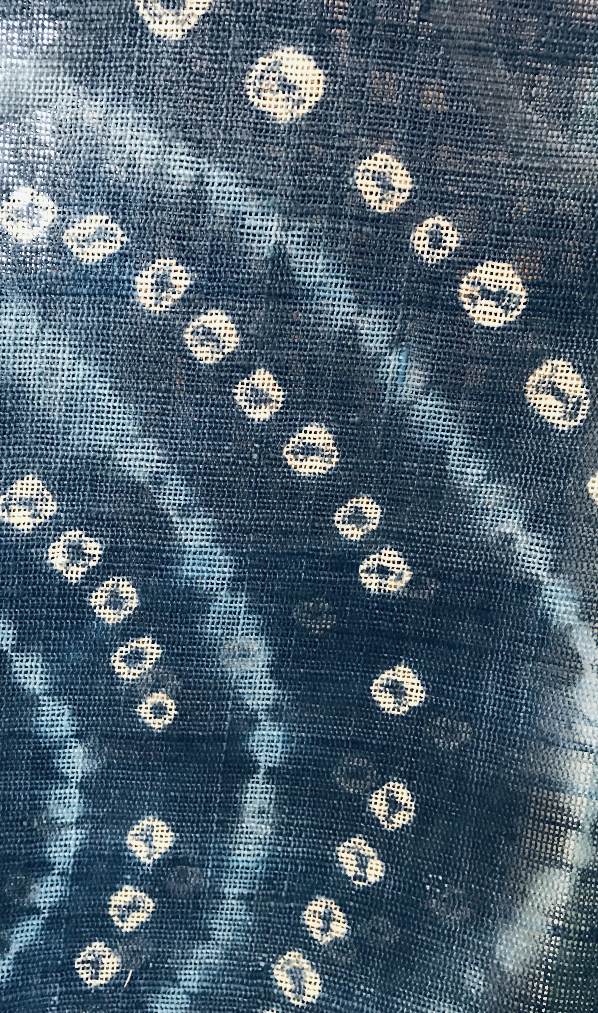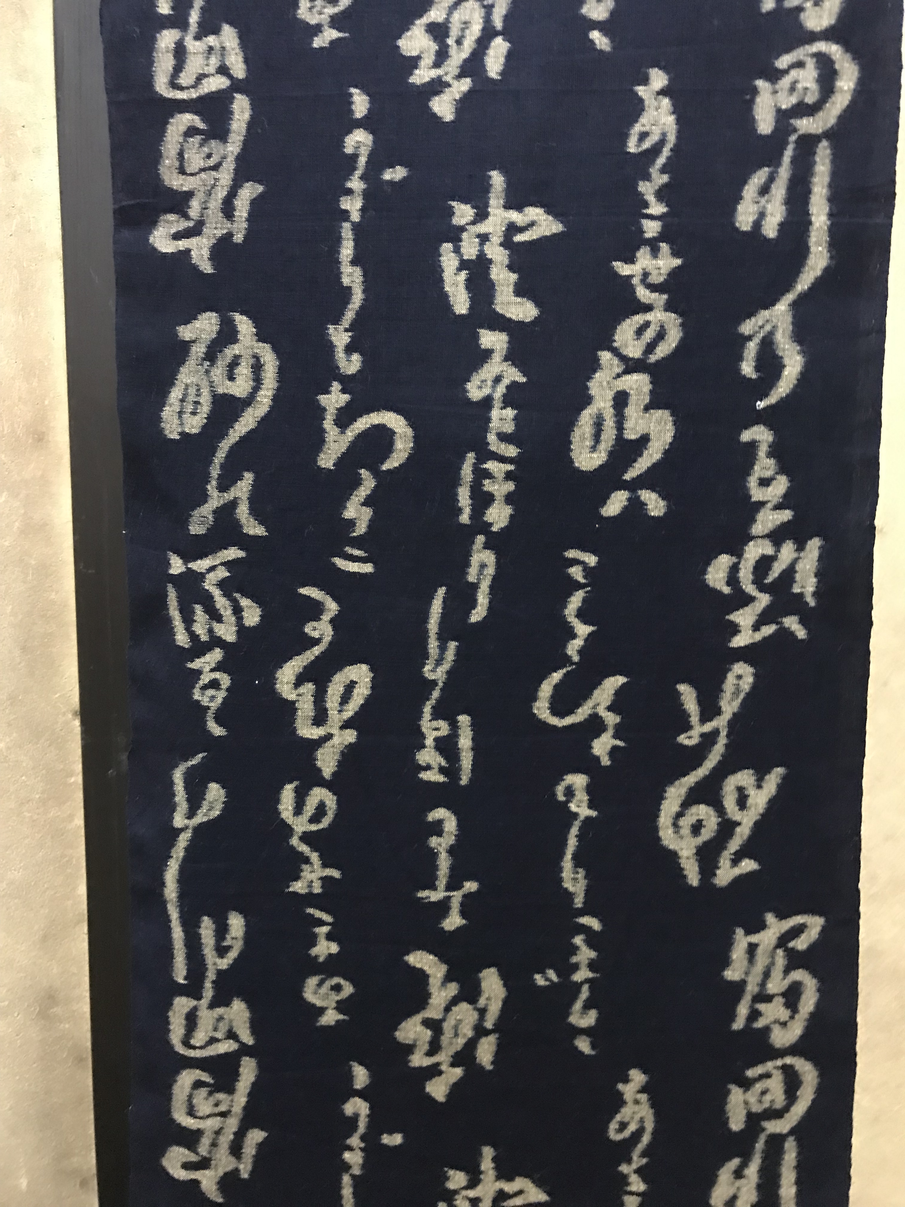 Now imagine tying off three pounds of fine thread to come up with two yards of Japanese kanji, like this vintage linen piece: