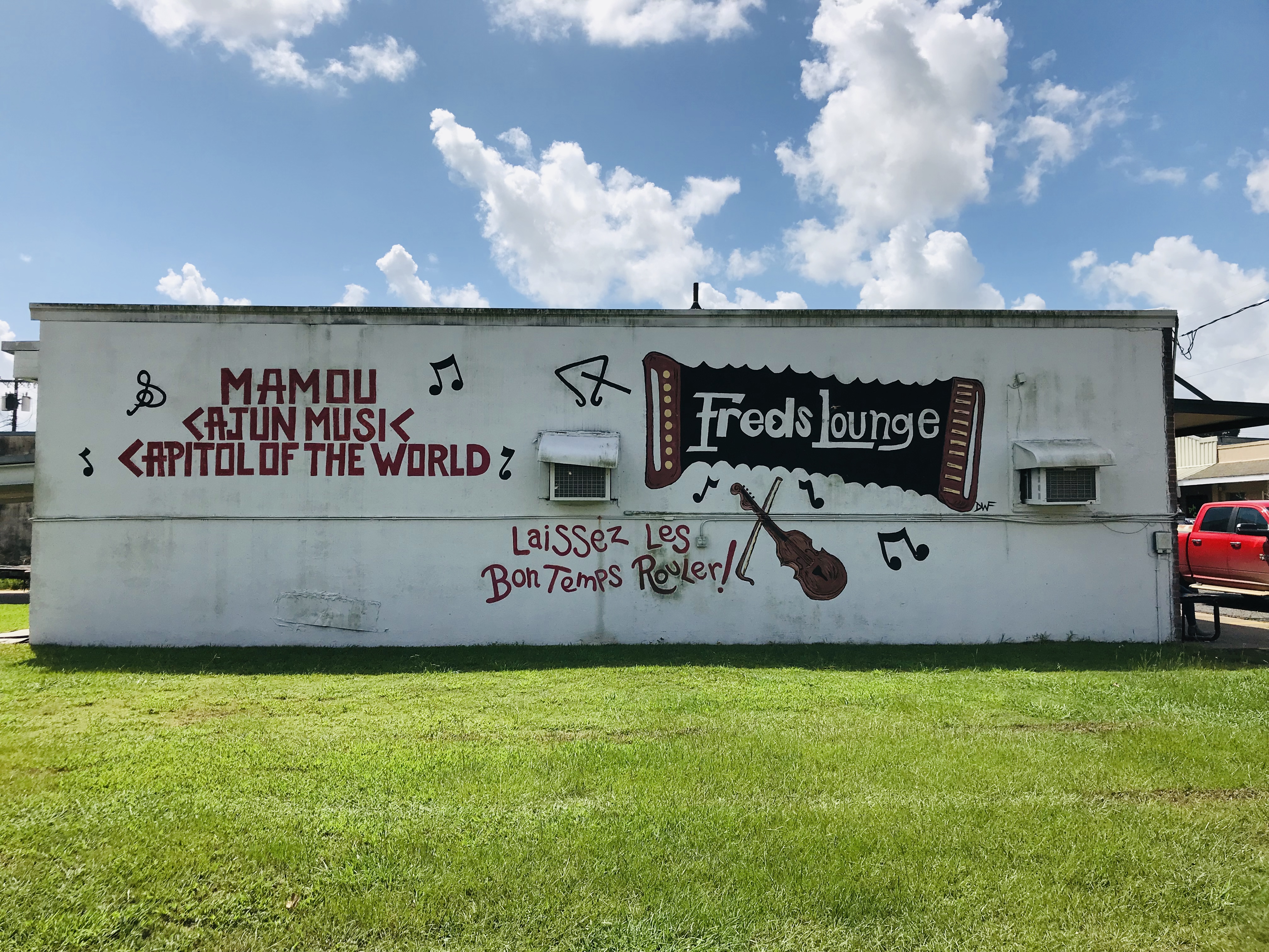 My first stop is Mamou, a modest farm town whose notoriety is way out of proportion to its size, thanks mainly to Fred’s Lounge. Every Saturday since godknowswhen, the best Cajun bands in the area start playing at Fred’s at 9am and the only brunch selections on the menu are alcoholic.