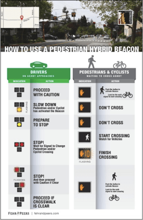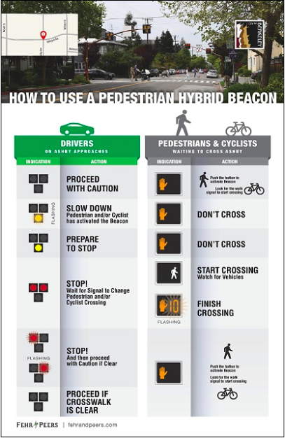 Instructions for how we should interpret a new pedestrian signal in Berkeley, which is sandwiched between two other old-fashioned signals, all within three blocks.