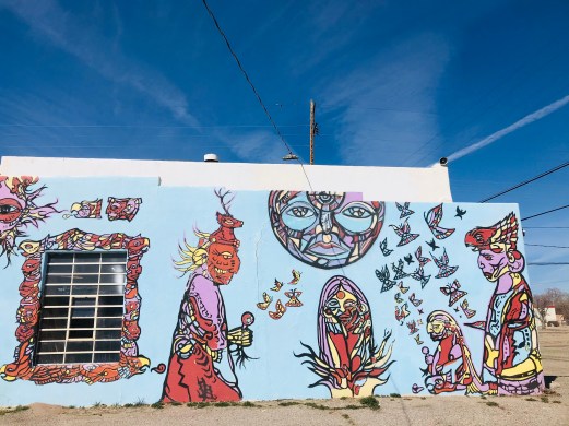 Next day heading south, I stopped in Espanola for a short visit. Espanola is a lot of fast food and car repair shops, and struggling families. I went there because Espanola has tried to build community with public art. Most of the murals I found depict the traditions of local tribes, the natural landscape, and farming. They are beautiful in the ways they speak to the community.