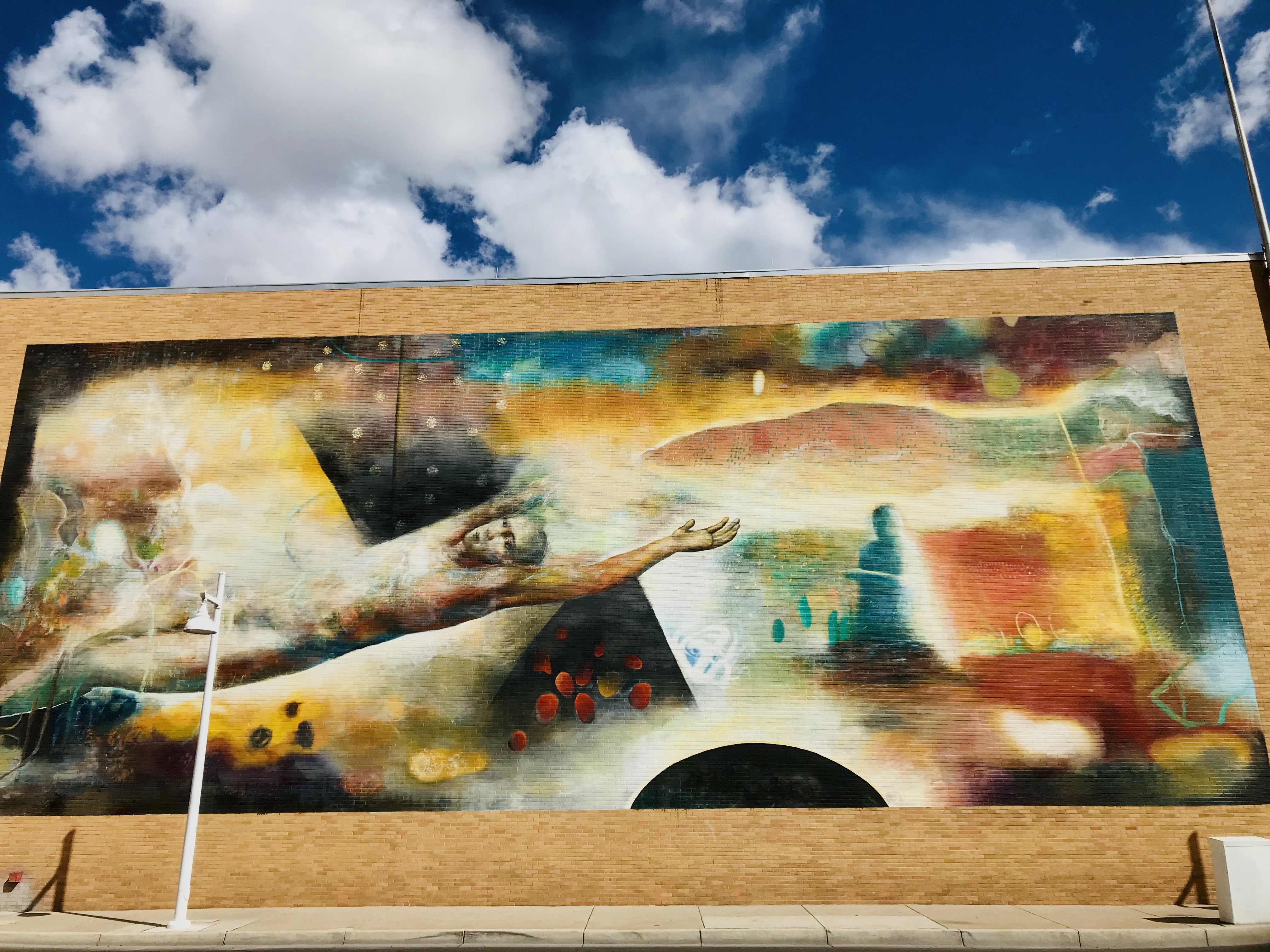 From the bridge, we returned to the park and headed south to downtown. New Mexico has had some pretty strong public safety rules during the pandemic, so downtown was all but shut down, and easy to navigate. The center of the city is loaded with murals, some by local artists and some by members of the international community of mural painters. The city commissioned many of the murals, but some appeared organically last summer during the BLM protests.
