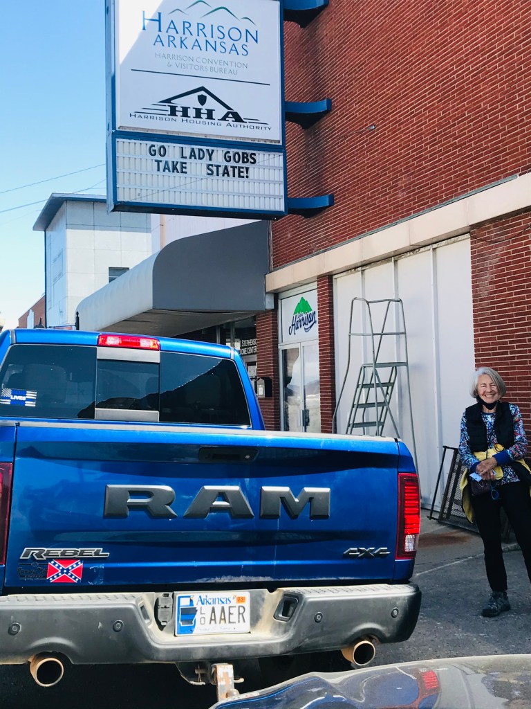 Our destination was Mountain View, but we stopped on the way for a night in Harrison. Except for being a small town in Arkansas, Harrison is nothing like Bentonville. Its economy is floundering. Many of the businesses in the town square are closed, and the rest are mainly corporate franchises on the highway. Not a walking town, no art, no flowers. Harrison is mainly known for its racist history and is the headquarters of a large unit of the Ku Klux Klan. We maybe saw a little evidence of that, but got out of town before I could plan any mischief. https://www.pbs.org/independentlens/banished/harrison.html